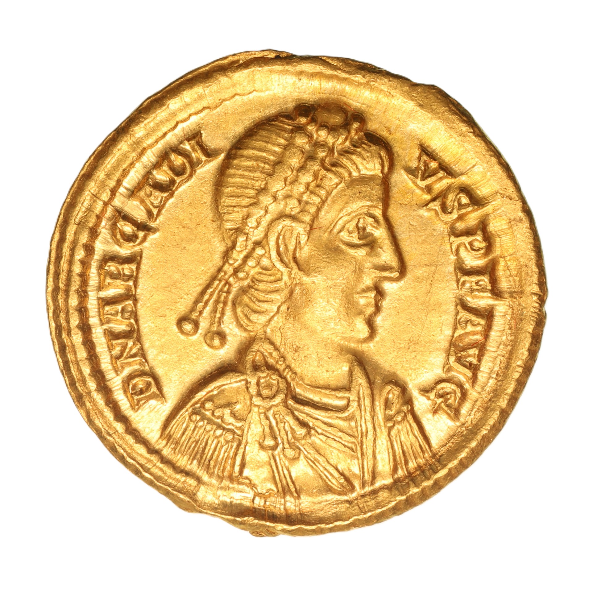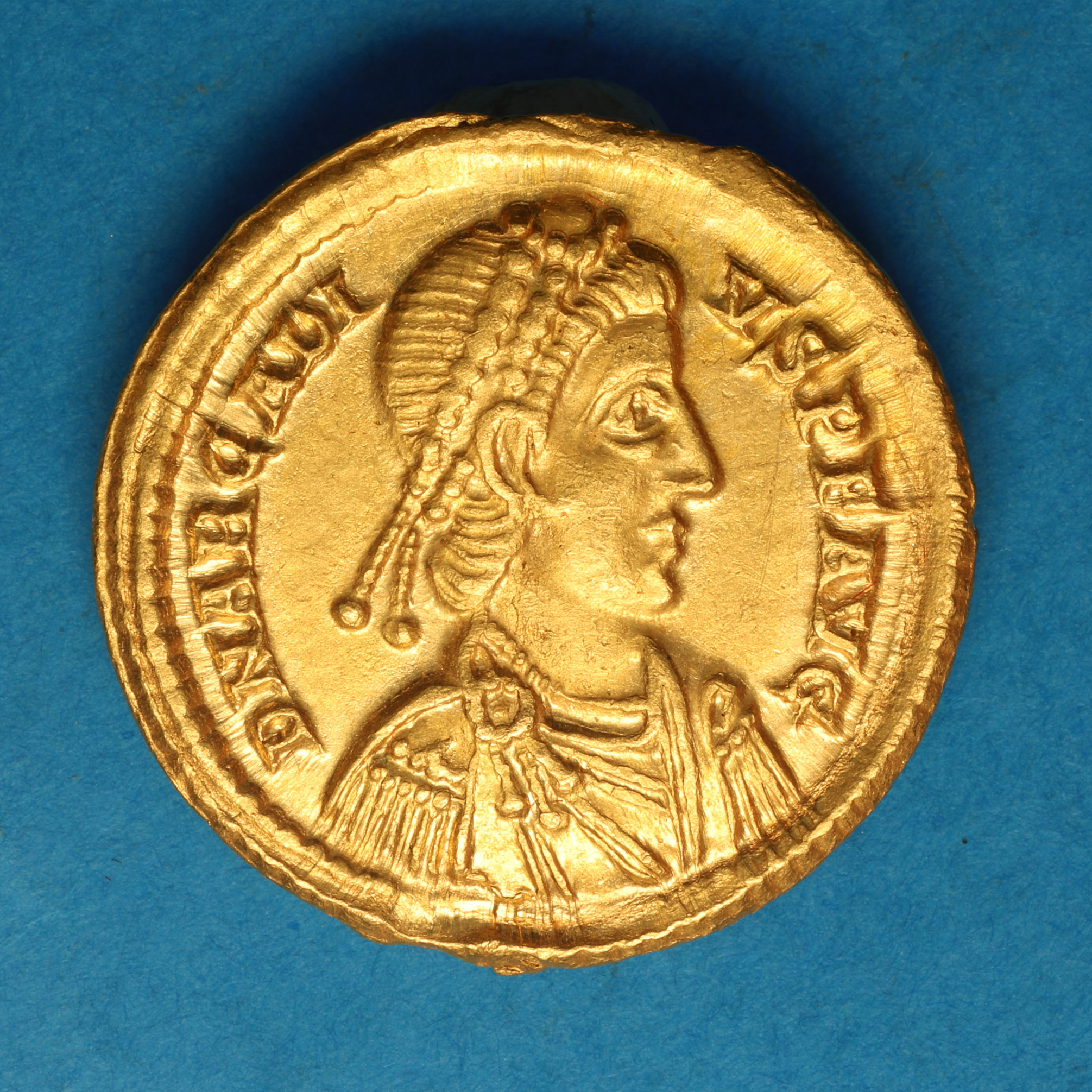 Arcadius was the eldest son of Theodosius and Aelia Flaccilla and was born before his father was elevated to the eastern throne in AD379. He was co emperor with his father for 12 years until his elevation as sole emperor of the Eastern empire upon his father’s death in AD 395. Married to Aelia Eudoxia he had 5 children including Theodosius II who succeeded him as emperor in AD 408.
