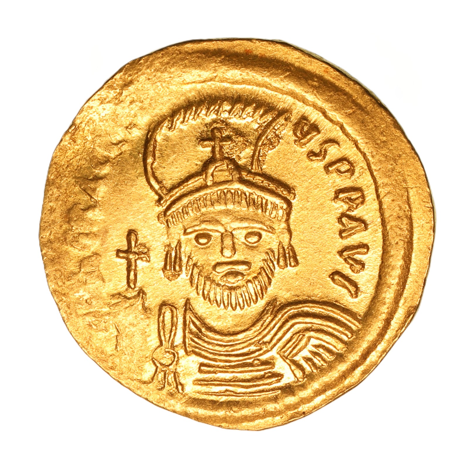 Draped and cuirassed bust of Heraclius wearing plumed helmet/Cross on steps potent