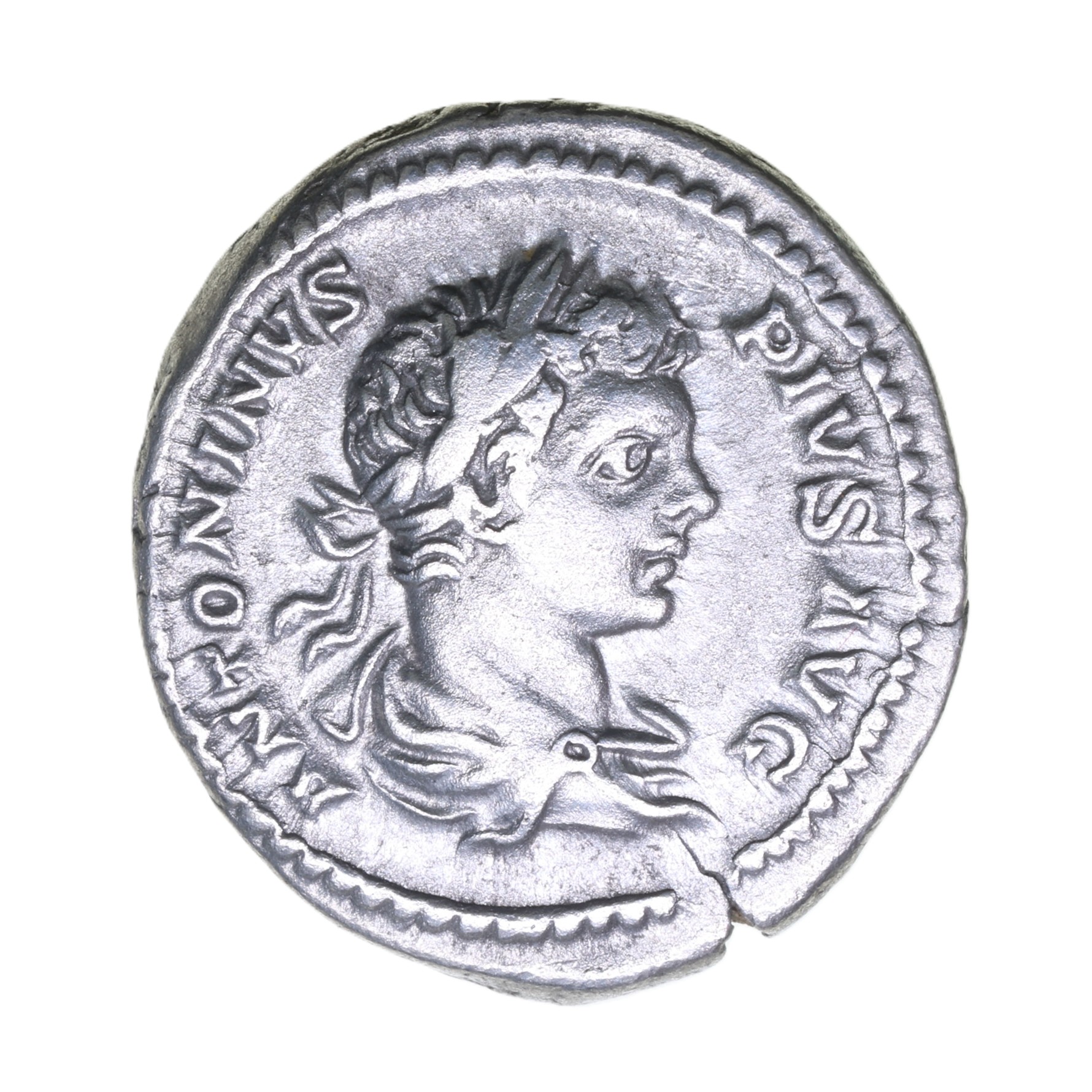 Caracalla was the eldest son of Septimius Severus. His name was a nick name taken from the long Gallic cloak which he made fashionable in Rome. His actual name was Julius Bassianus although he changed this to Marcus Aurelius Antoninus when he became Caesar in AD 195. Later in AD 198 he was elevated to Augustus along with his father Septimius Severus.