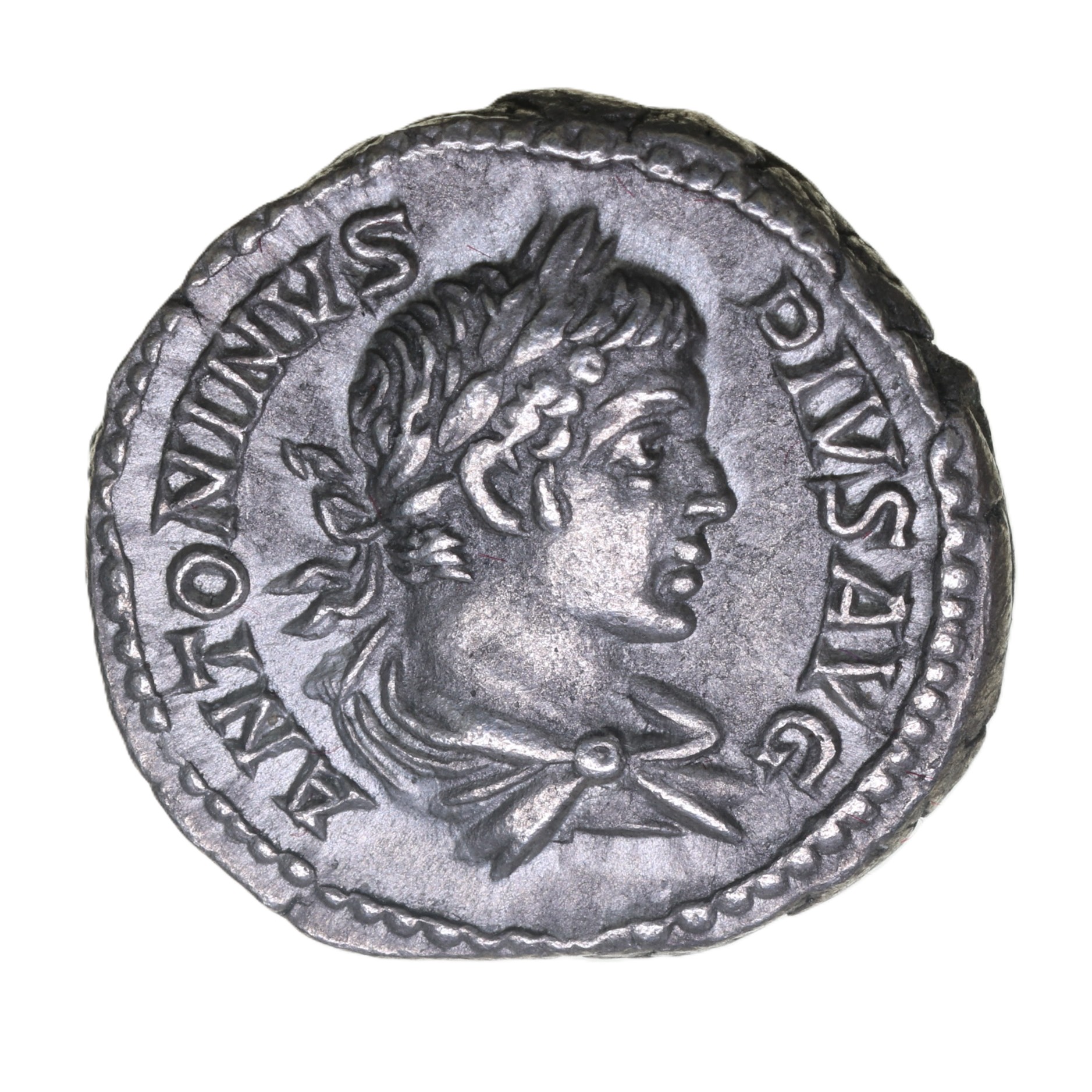 Caracalla was the eldest son of Septimius Severus. His name was a nick name taken from the long Gallic cloak which he made fashionable in Rome. His actual name was Julius Bassianus although he changed this to Marcus Aurelius Antoninus when he became Caesar in AD 195. Later in AD 198 he was elevated to Augustus along with his father Septimius Severus.