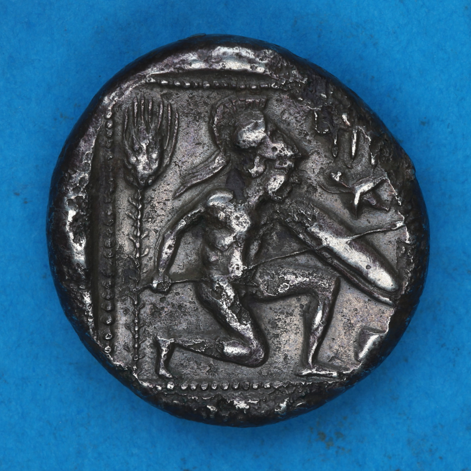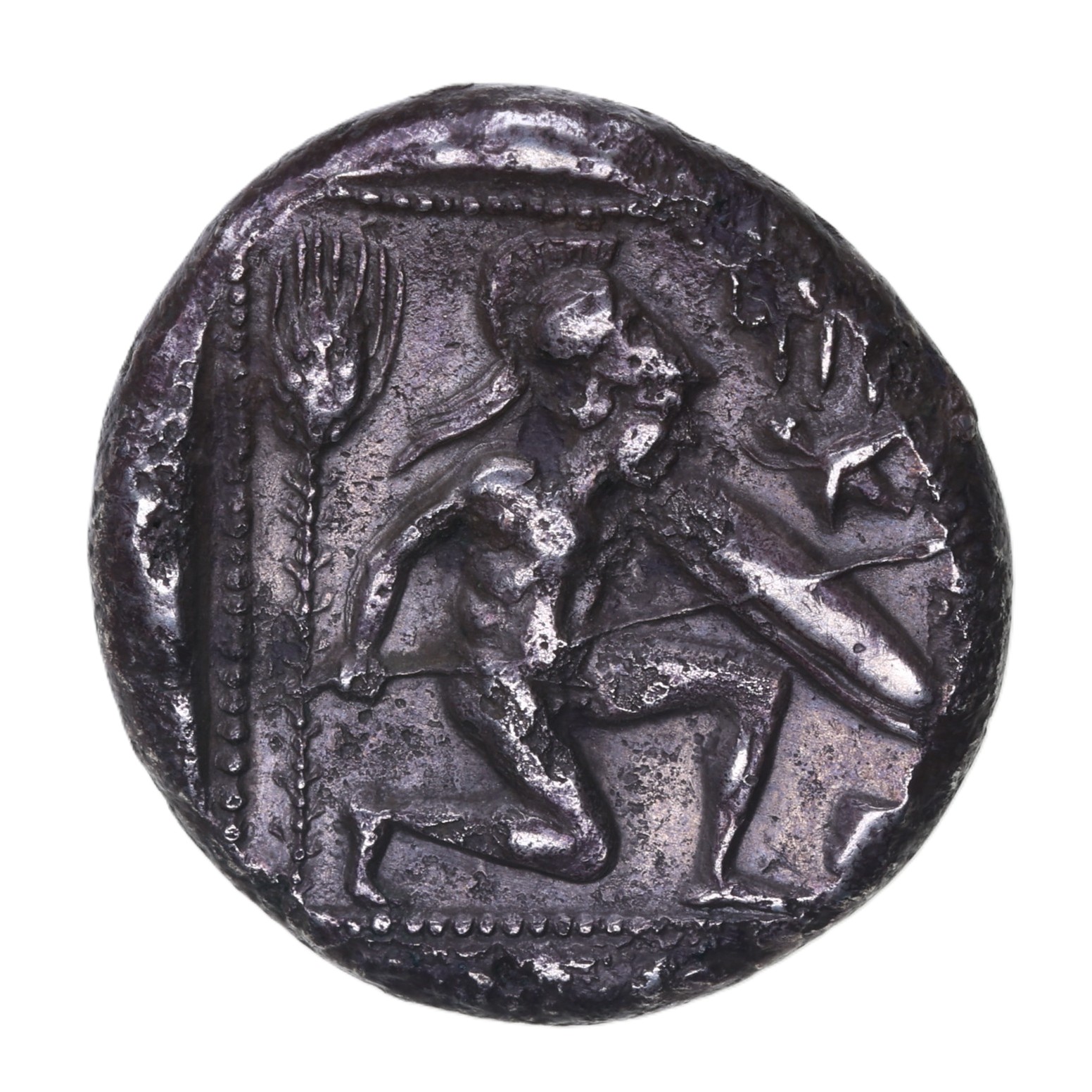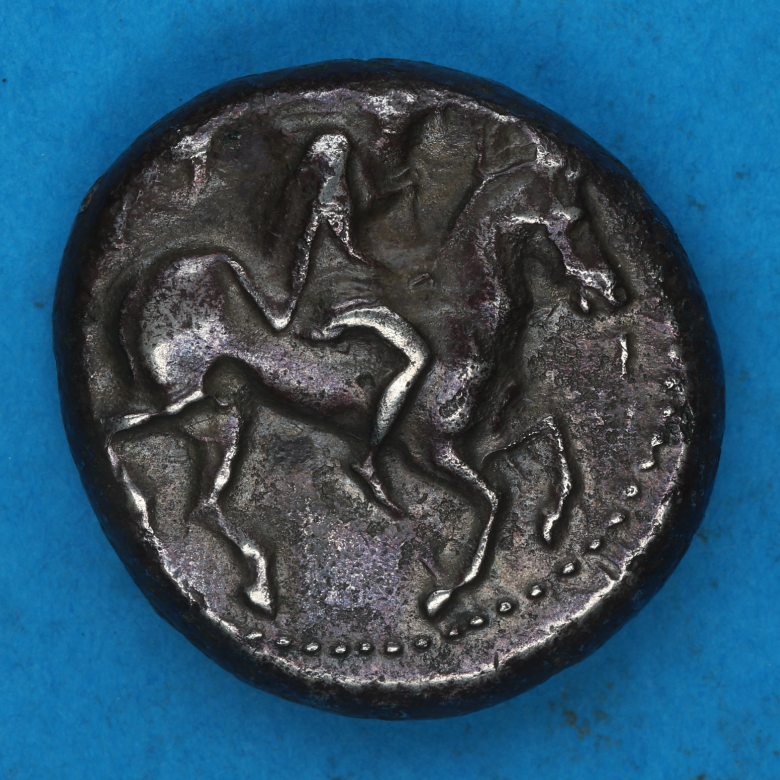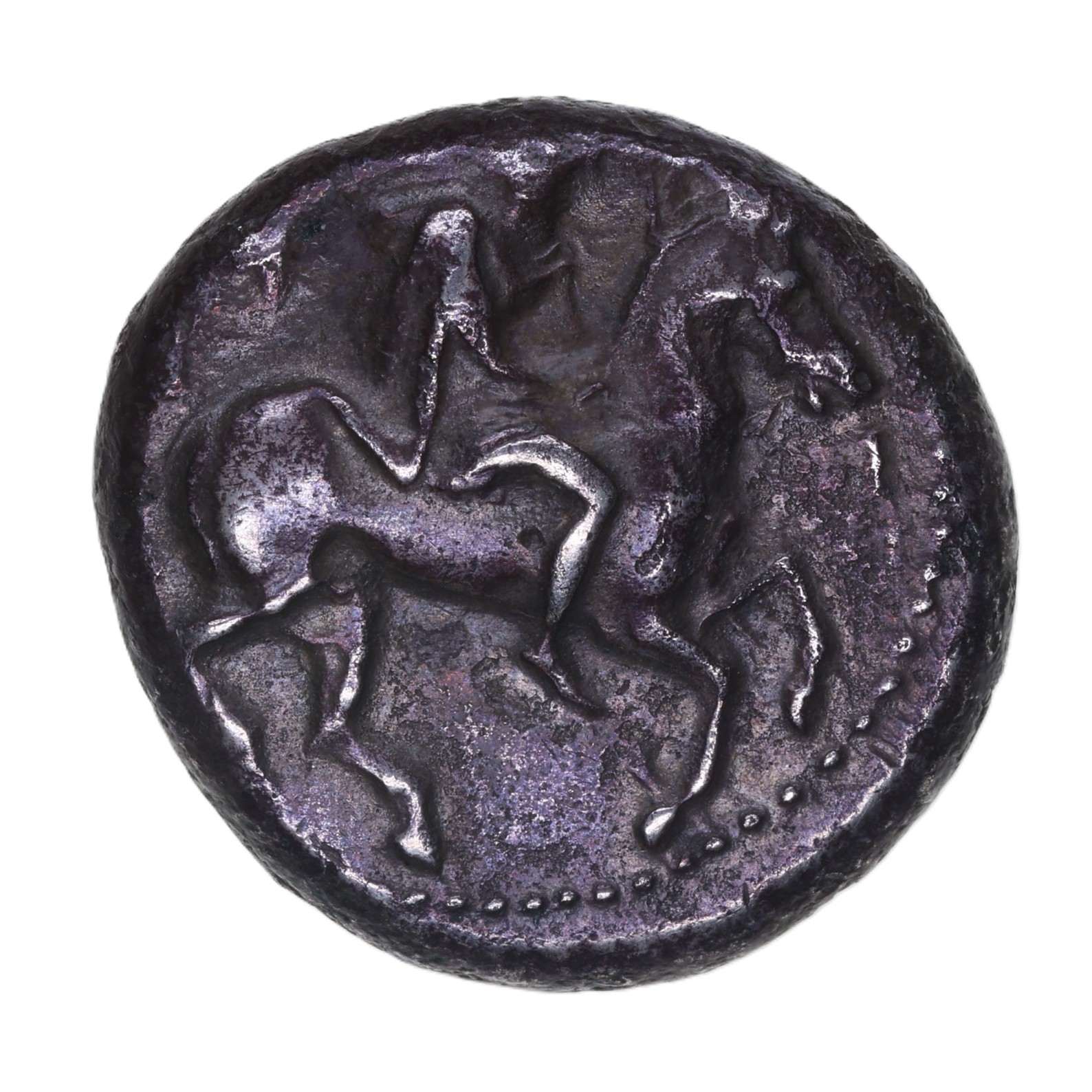 This coin comes from the Cambridge collection of Ancient Greek Coinage. This extensive collection was formed over 40 years by a couple who shared their passion for classical history, carefully collecting as many known types as were available, spending hours labelling each coin and fitting it in to their collection. The kingdom of Ancient Greece is not easy to understand but illustrated with these wonderful coins a map emerges and being so beautiful in their design, they are a pleasure to handle. As with any collection the time comes where it must be passed on and in this case the collectors decided to sell each coin individually to give the next generation of enthusiasts the opportunity to select pieces for their own collections. Many of the coins have previous labels.