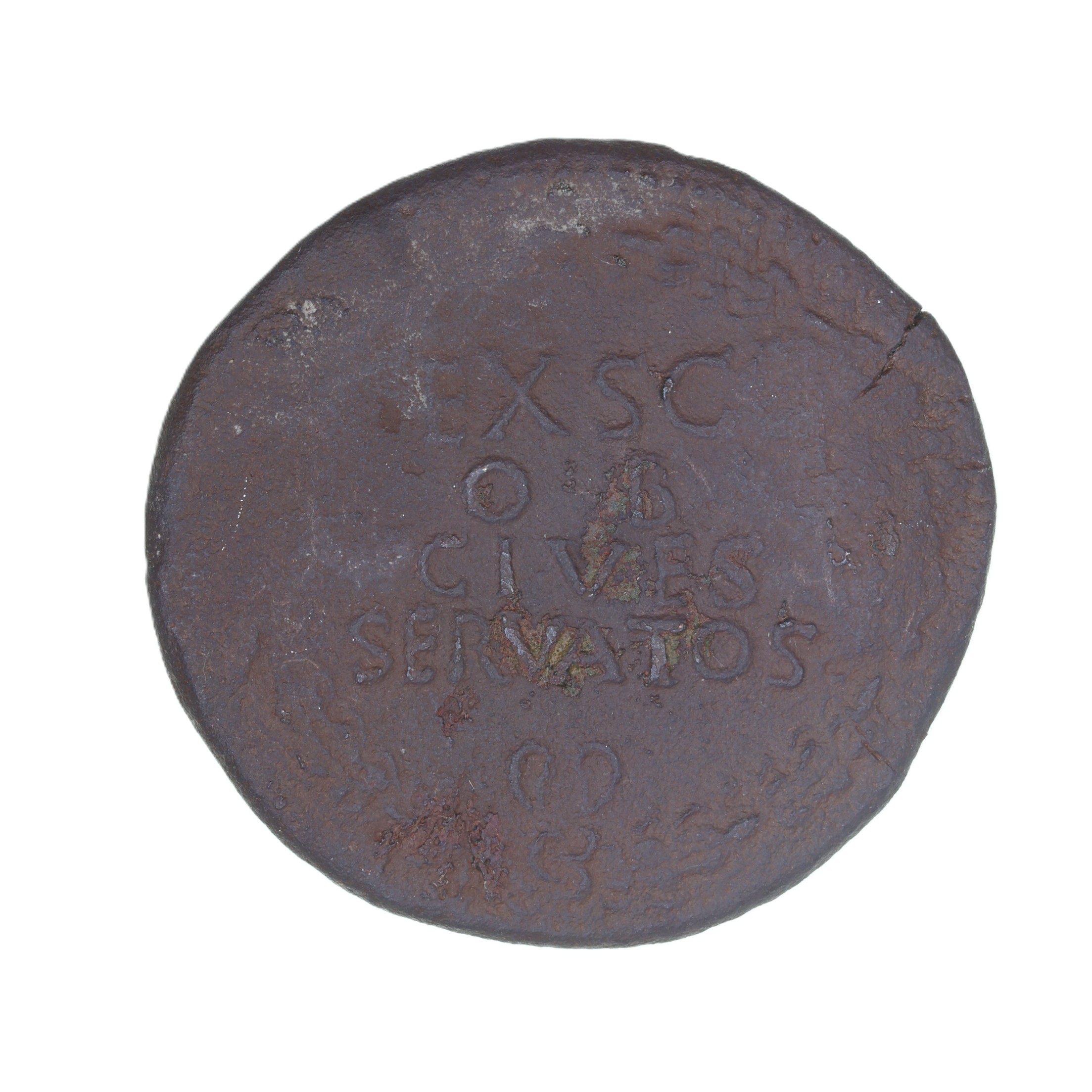 Laureate bust right / 4 lines within oak wreath. EX S C/PP/OB CIVES/SERVATOS
