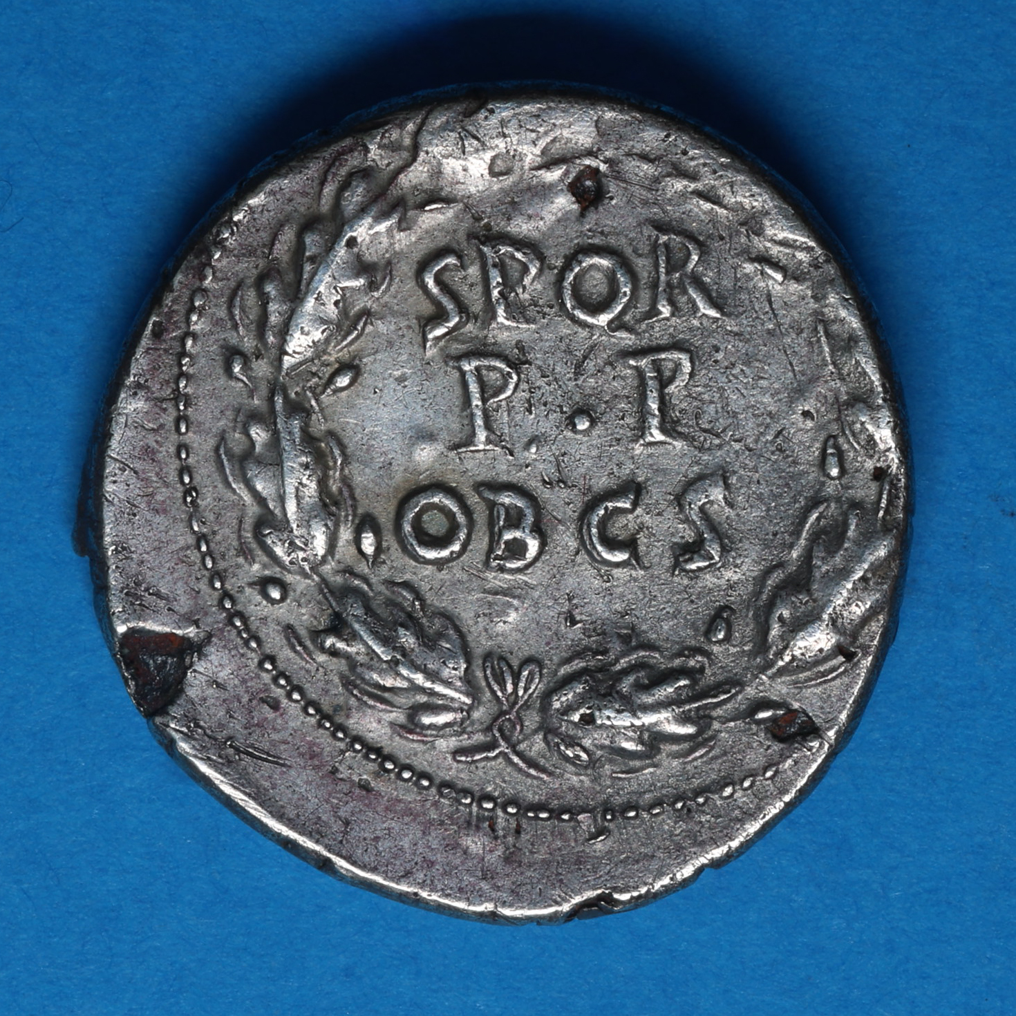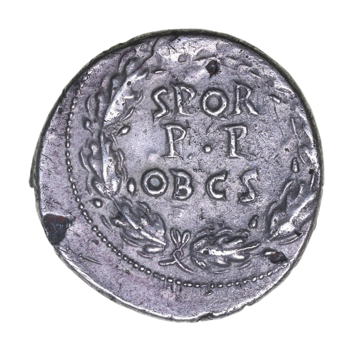 Laureate bust right/ SPQR in wreath