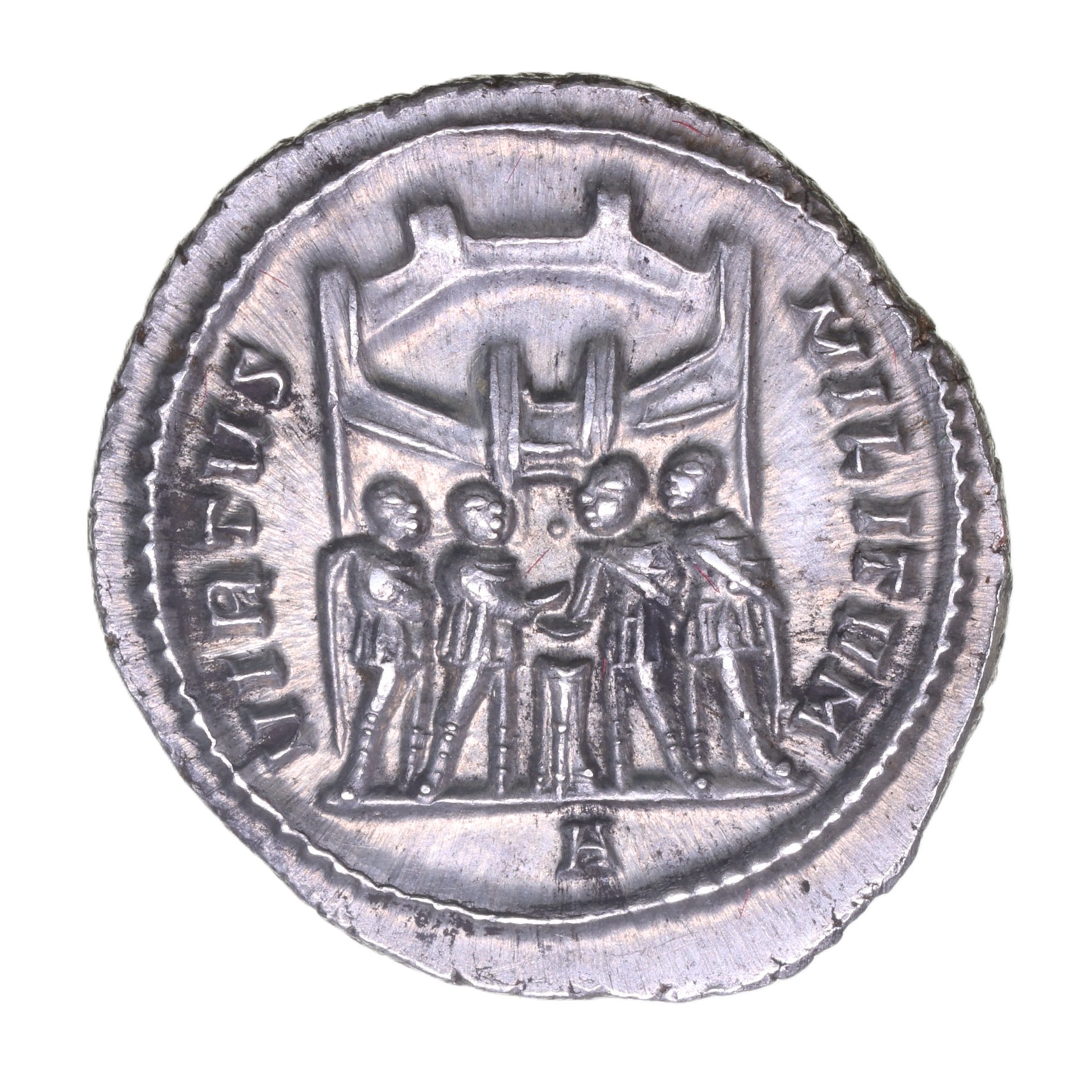 Constantius was also of humble stock but had a successful military career eventually being appointed governor of Dalmatia under Diocletian. In AD 293 he was chosen to become a member of the Tetrachy and was appointed Caesar by Maximian, who was the Augustus in the west. This gave him responsibility for disposing of the usurper Carausius and later his successor Allectus. Biding his time he eventually invaded Britain in AD 296 defeating Allectus and bringing Britain back under Roman control. His reputation enhanced he went on to achieve a victory over the Alamanni in AD 302.