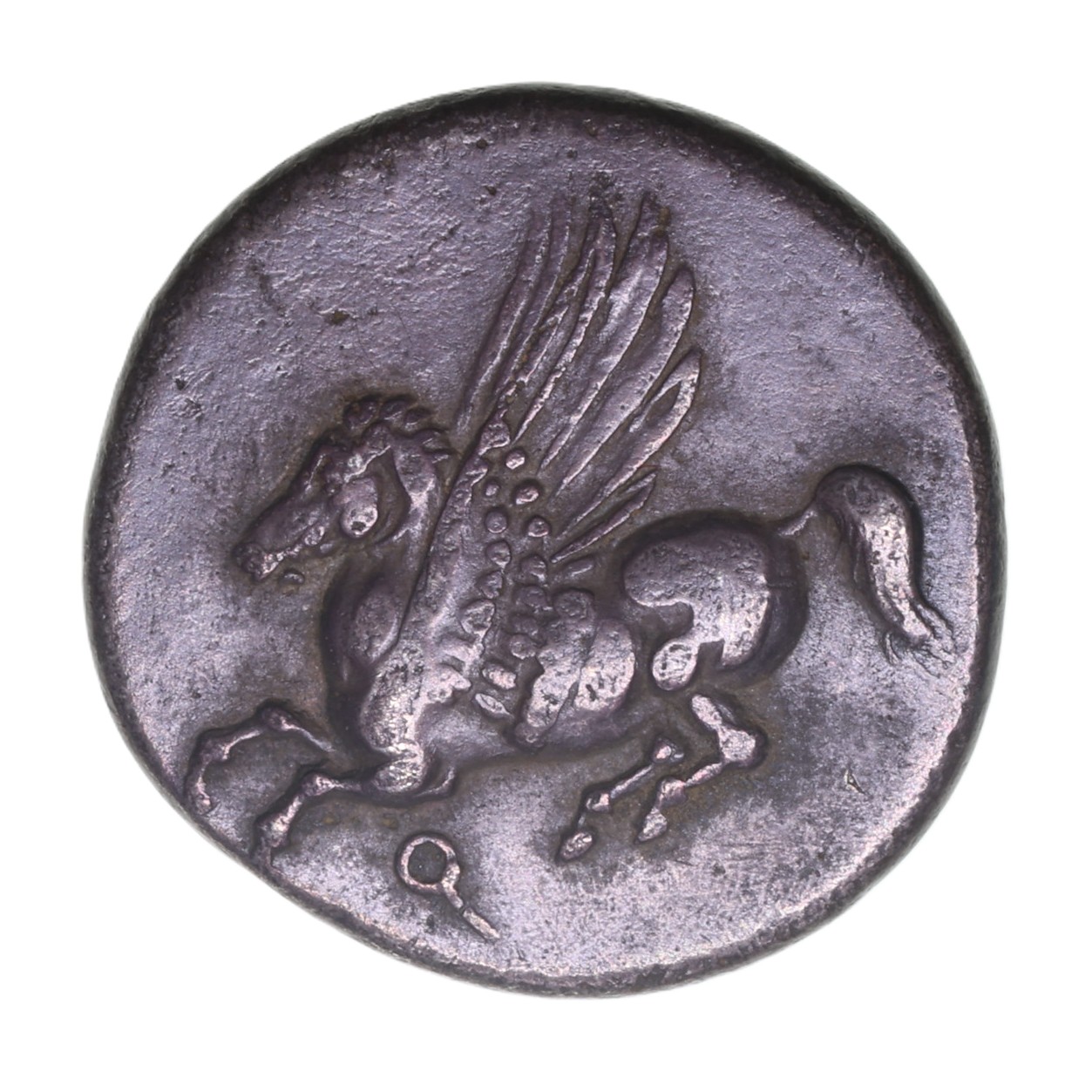 This coin comes from the Cambridge collection of Ancient Greek Coinage. This extensive collection was formed over 40 years by a couple who shared their passion for classical history, carefully collecting as many known types as were available, spending hours labelling each coin and fitting it in to their collection. The kingdom of Ancient Greece is not easy to understand but illustrated with these wonderful coins a map emerges and being so beautiful in their design, they are a pleasure to handle. As with any collection the time comes where it must be passed on and in this case the collectors decided to sell each coin individually to give the next generation of enthusiasts the opportunity to select pieces for their own collections. Many of the coins have previous labels.