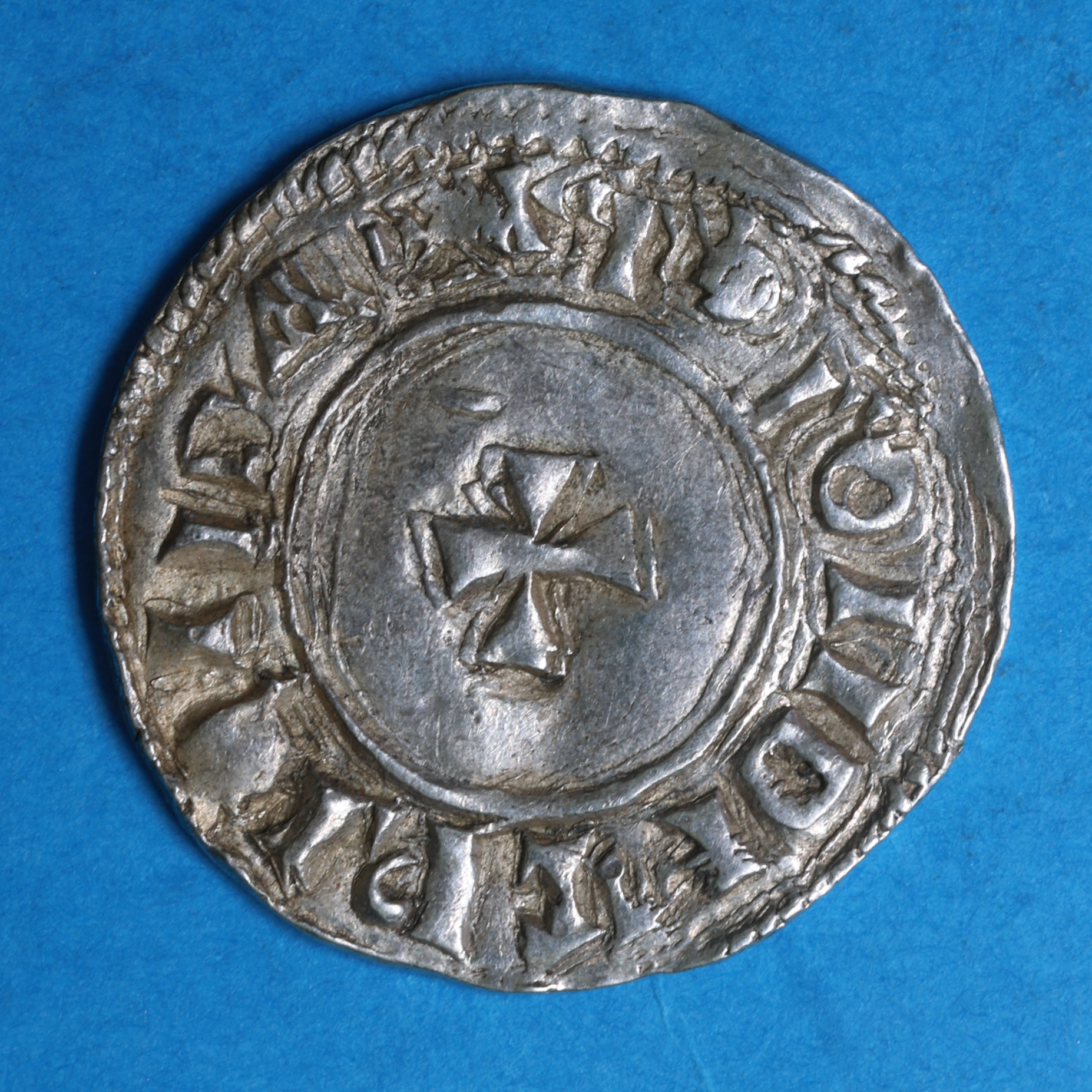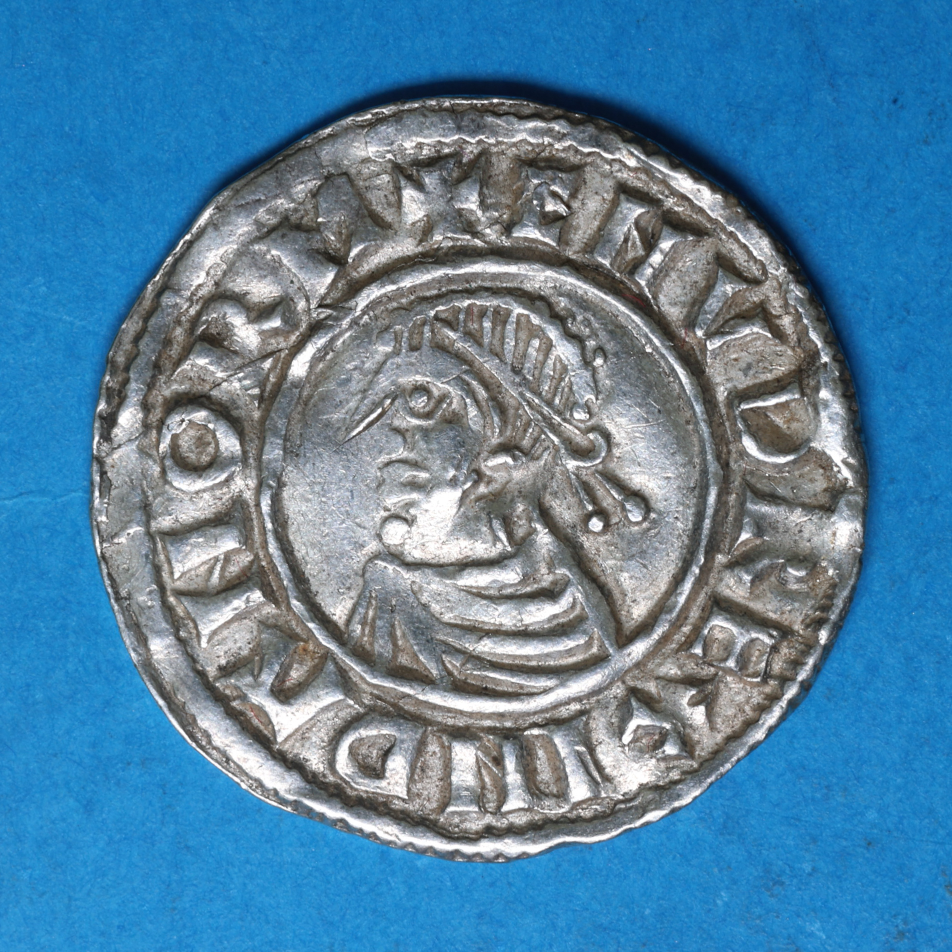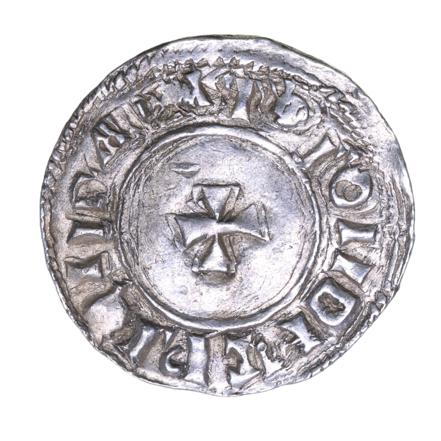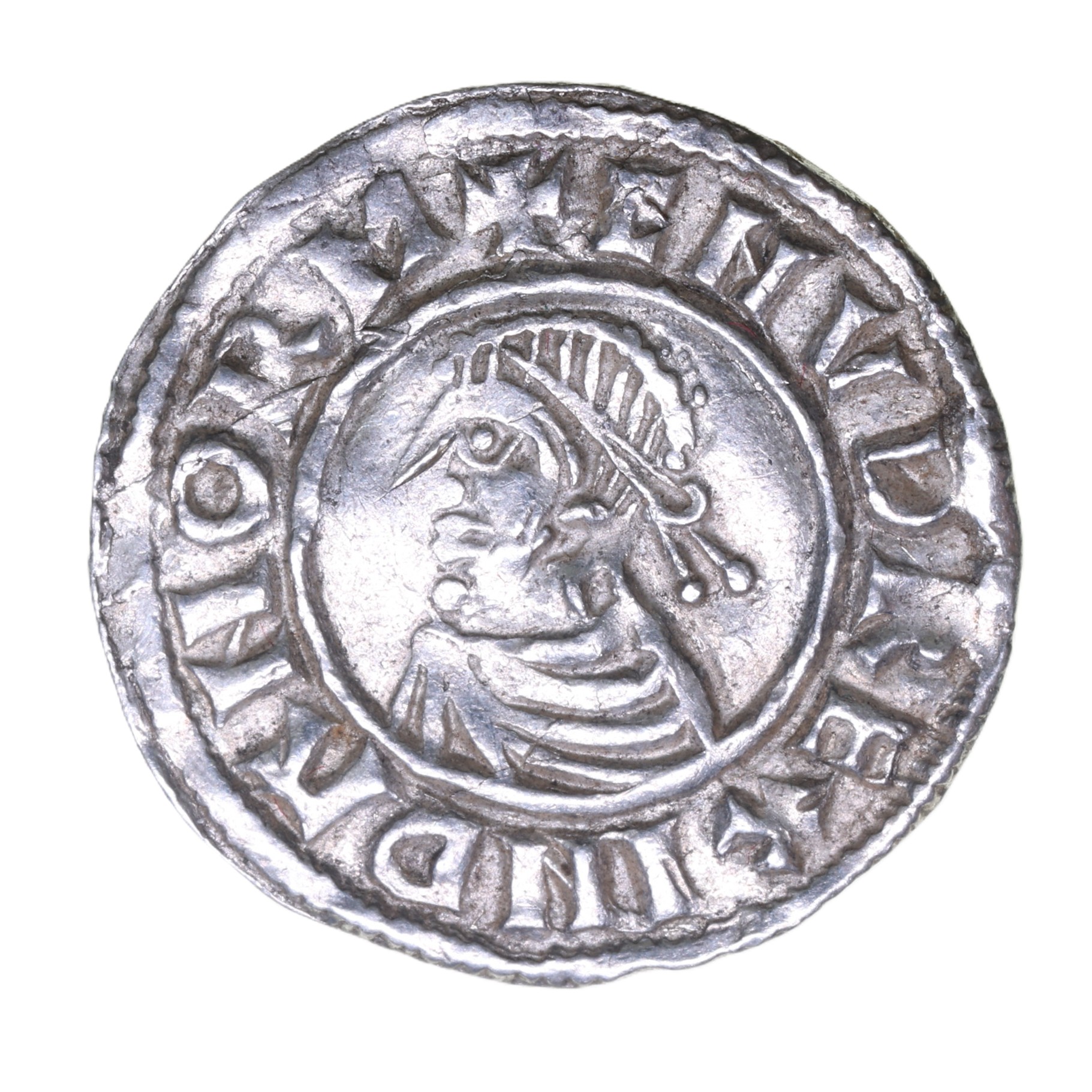 Imitating Aethelred II Last Small Cross type but with obverse legend ‘CNVD REX IN DANORM’.