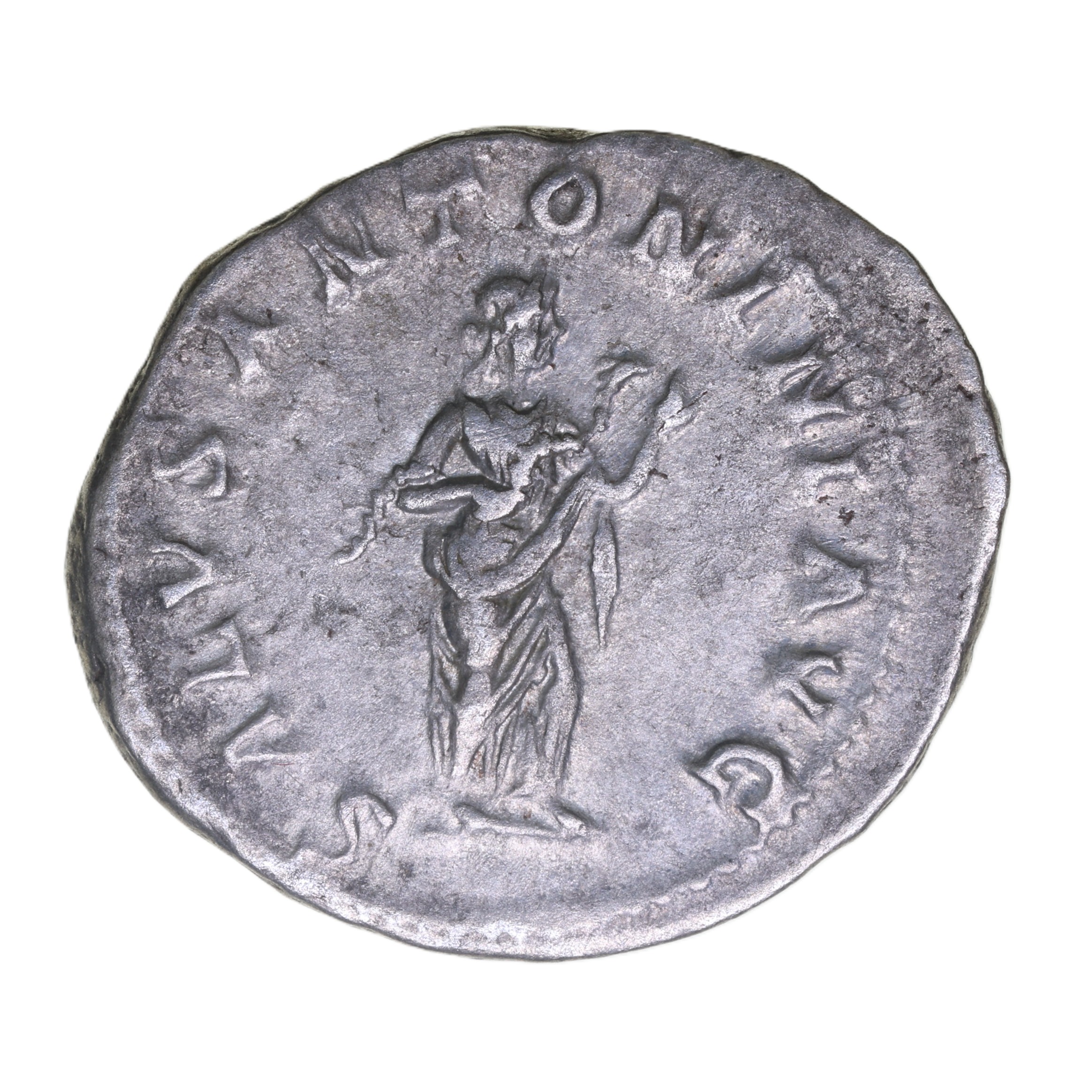 Laureate bust right/ Salus standing feeding snake held in arms
