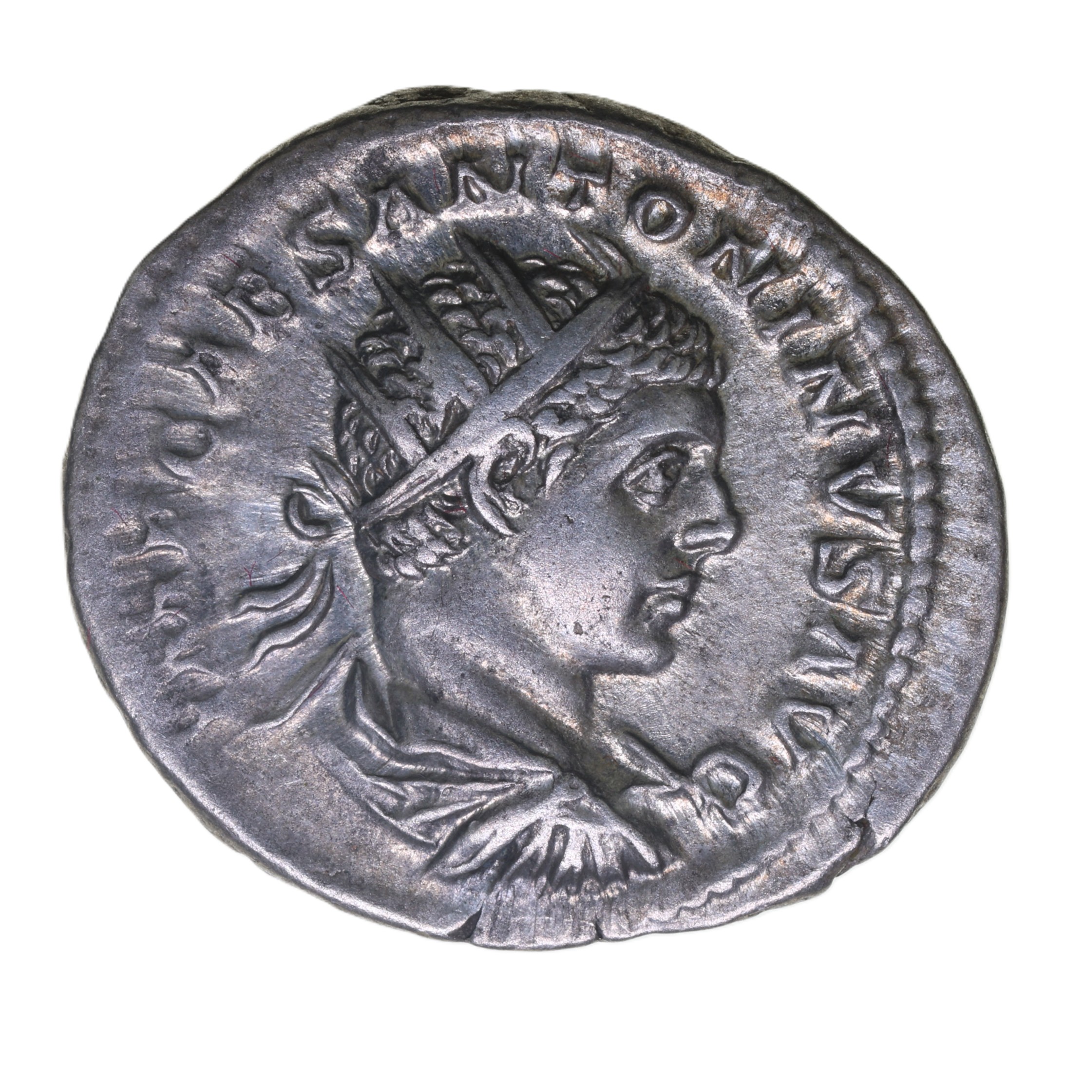 Born around AD 204, Elagabalus or Heliogabalus, also known as Marcus Aurelius Antoninus, took his name from a sun god Elah Gabal and the black stone which he worshipped as a priest. A son of Julia Soaemias, elder daughter of Julia Domnaβs sister Julia Maesa the rumour spread that Elagabalus was in fact the son of Caracalla to whom he bore a strong resemblance. This ruse was successful in assuring the boy of strong army backing when there was a revolt against Macrinus in AD 218. Proclaimed emperor, when the two armies met shortly afterwards near Antioch Macrinus suffered a resounding defeat. Macrinus fled but was shortly afterwards captured and killed.