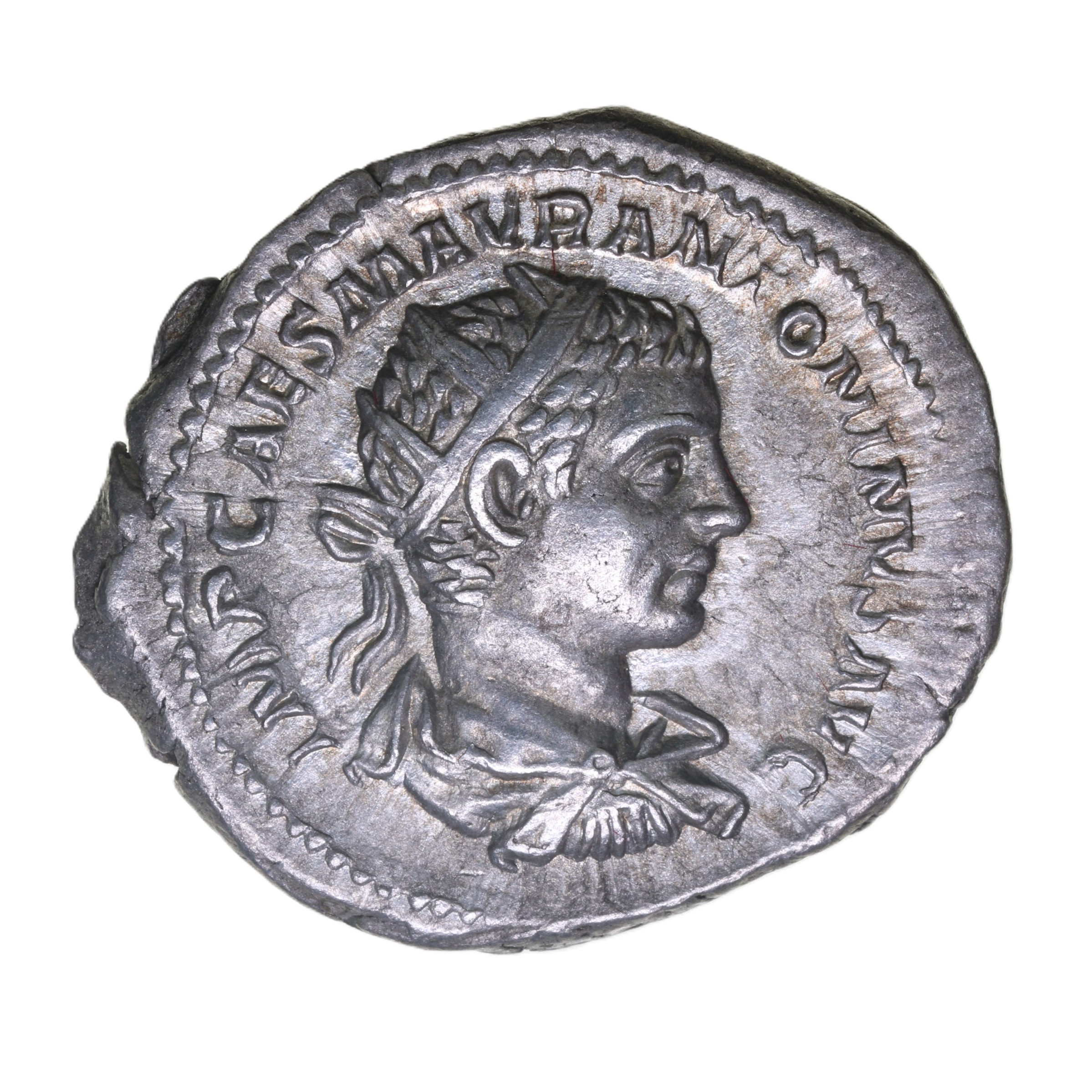 Born around AD 204, Elagabalus or Heliogabalus, also known as Marcus Aurelius Antoninus, took his name from a sun god Elah Gabal and the black stone which he worshipped as a priest. A son of Julia Soaemias, elder daughter of Julia Domnaβs sister Julia Maesa the rumour spread that Elagabalus was in fact the son of Caracalla to whom he bore a strong resemblance. This ruse was successful in assuring the boy of strong army backing when there was a revolt against Macrinus in AD 218. Proclaimed emperor, when the two armies met shortly afterwards near Antioch Macrinus suffered a resounding defeat. Macrinus fled but was shortly afterwards captured and killed.