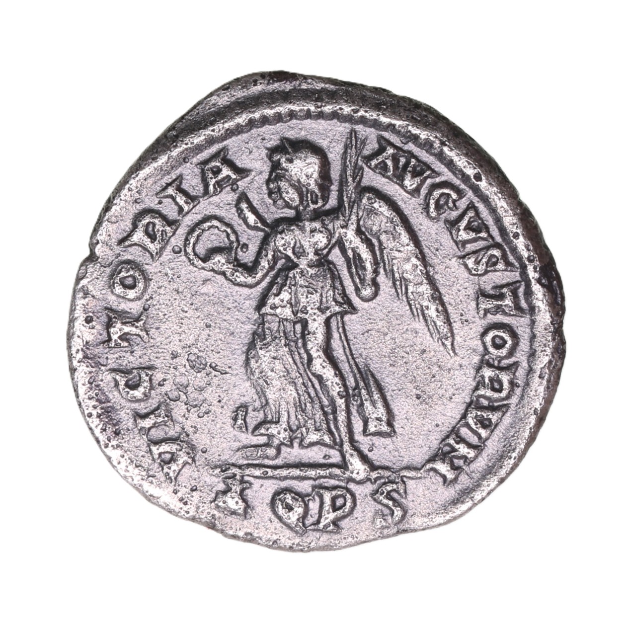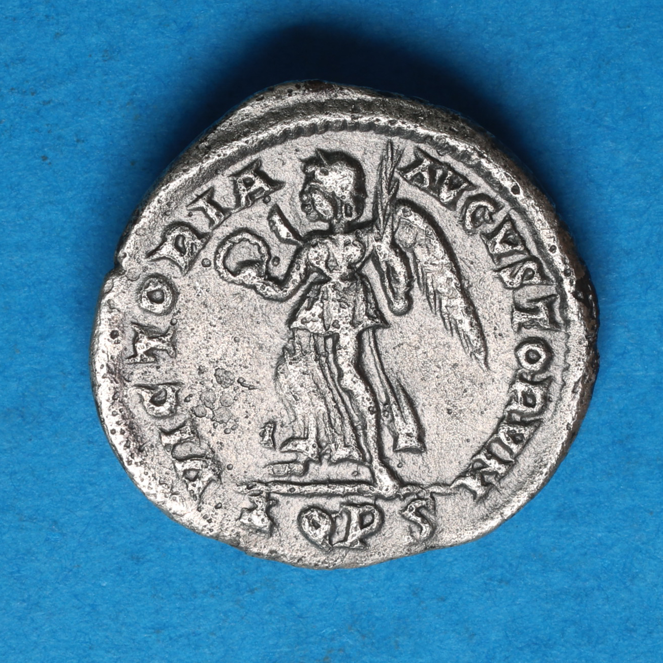 Diademed, draped and cuirassed bust right/Victory advancing holding wreath and palm
