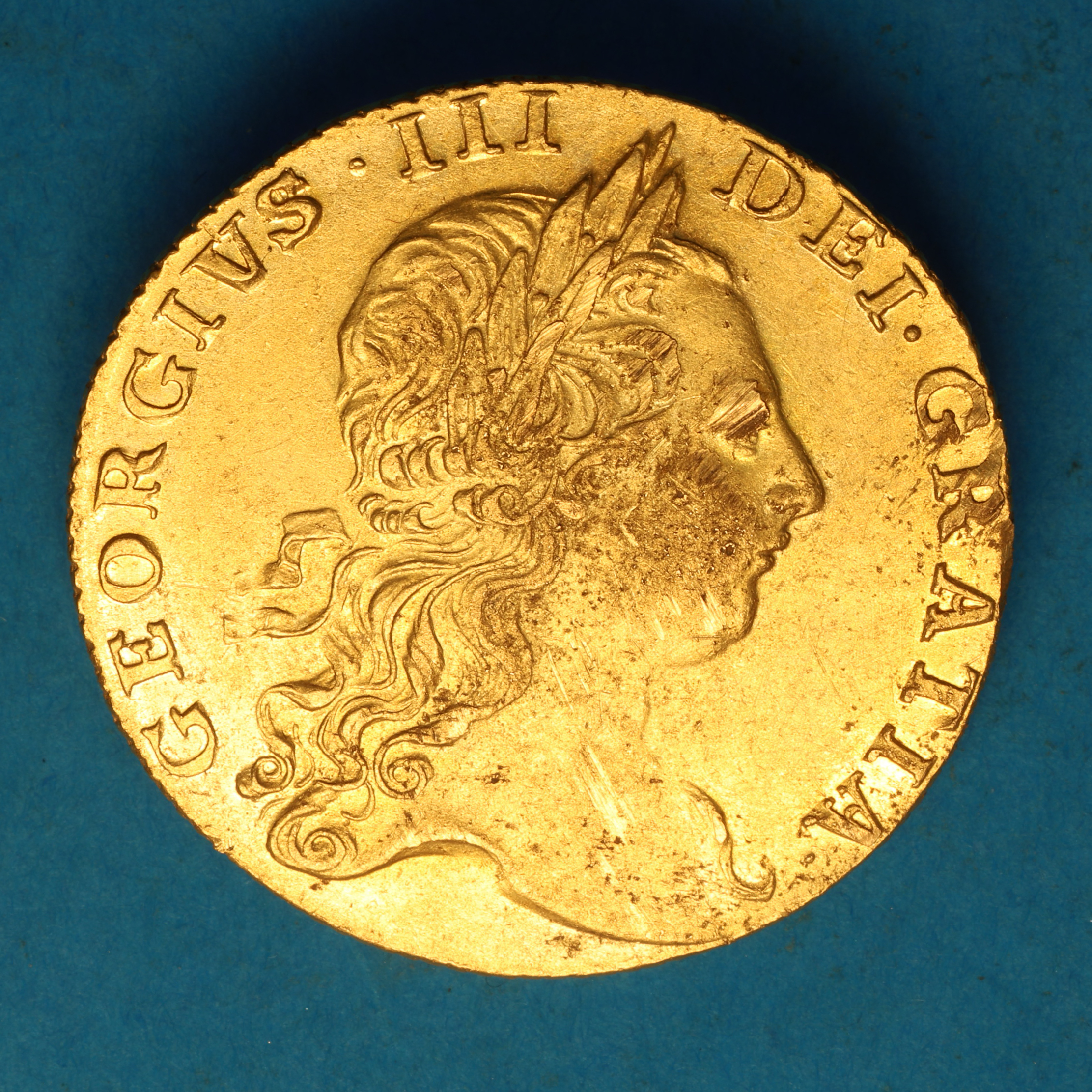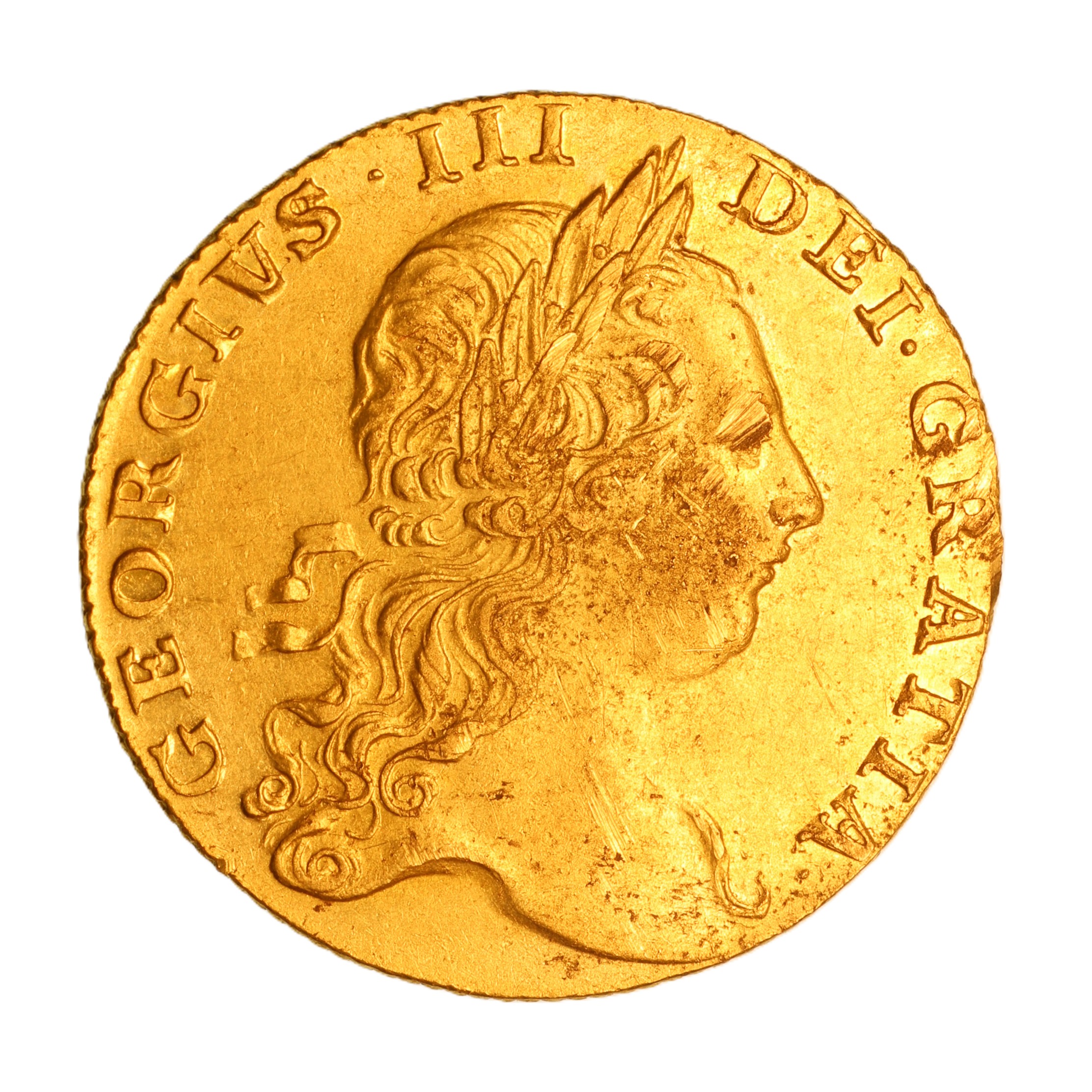 Whilst little silver or copper coinage was issued during the reign there were five issues of gold guinea coinage minted before the great recoinage took place in AD 1816.