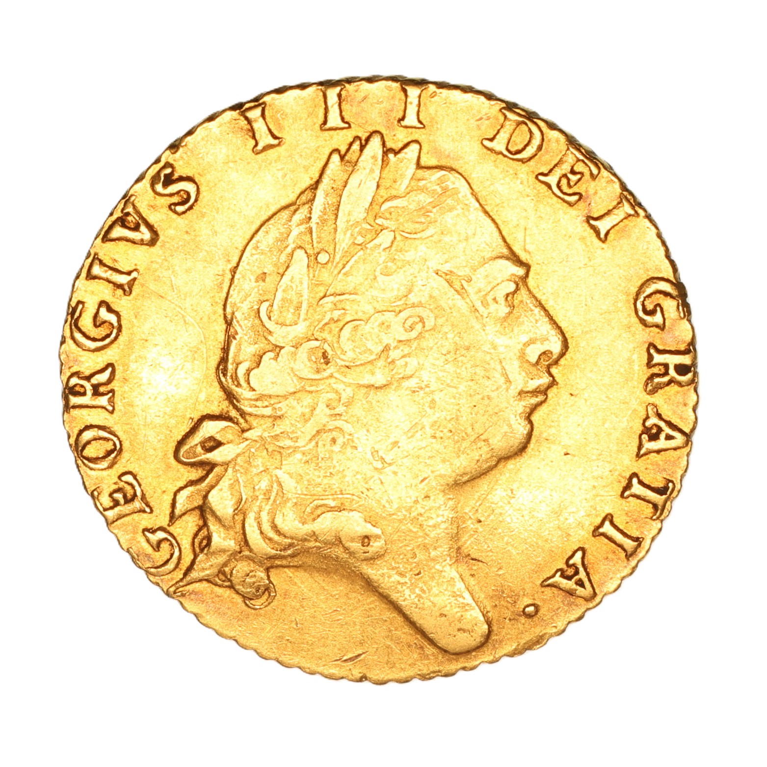 Whilst little silver or copper coinage was issued during the reign there were five issues of gold guinea coinage minted before the great recoinage took place in AD 1816.