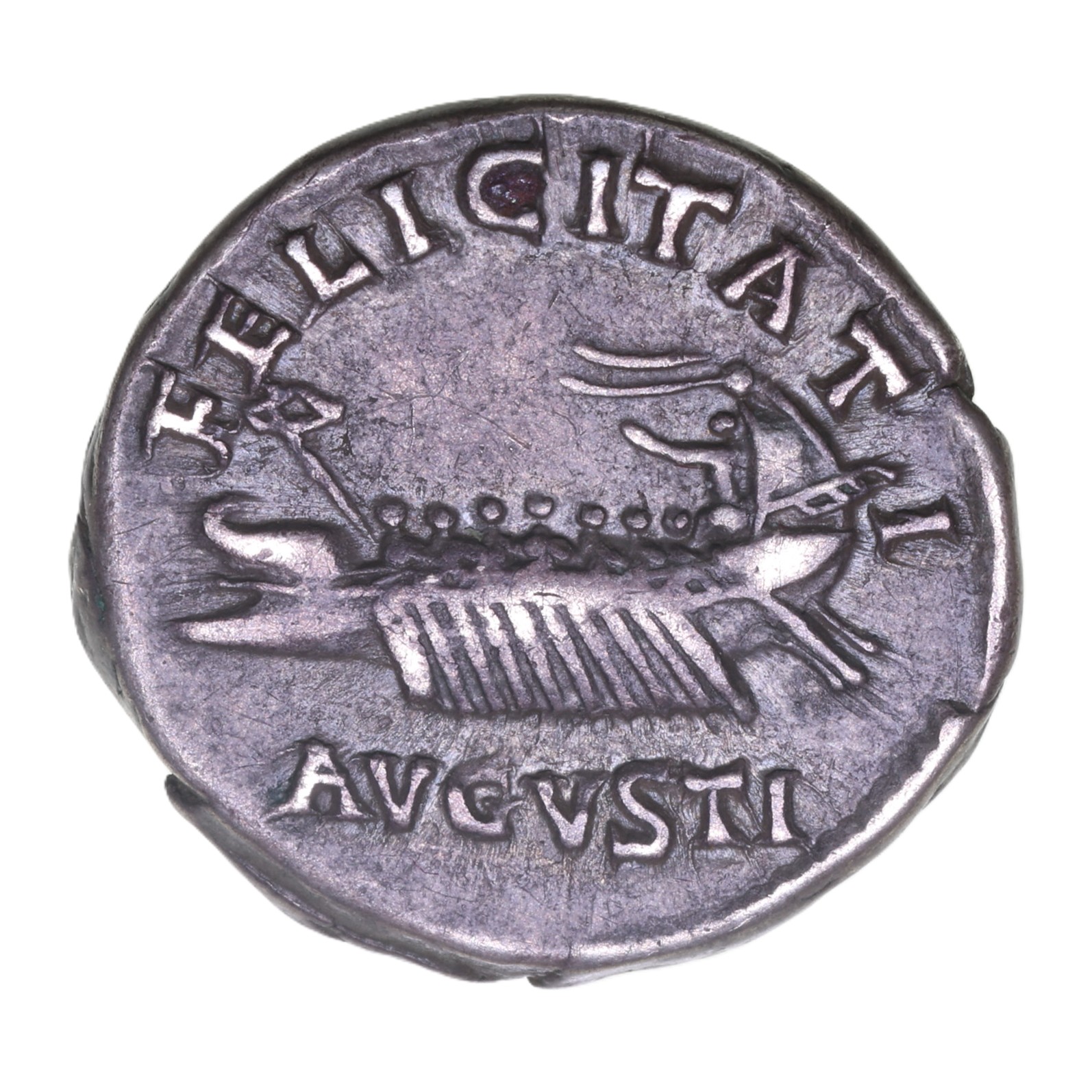 Laureate bust right / Galley left