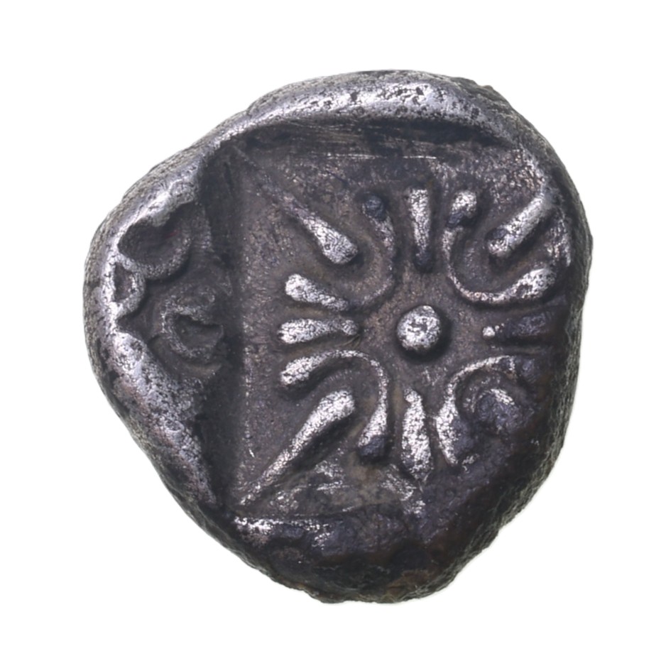 Roaring lion’s head / Stellate design in incuse square