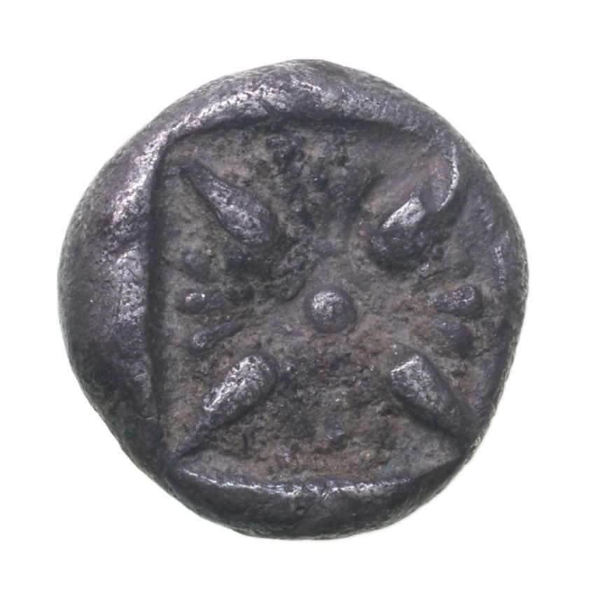 Roaring lion’s head / Stellate design in incuse square