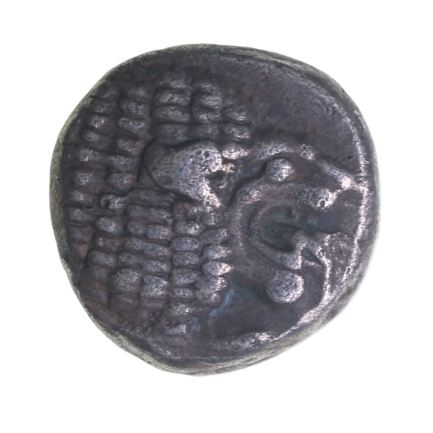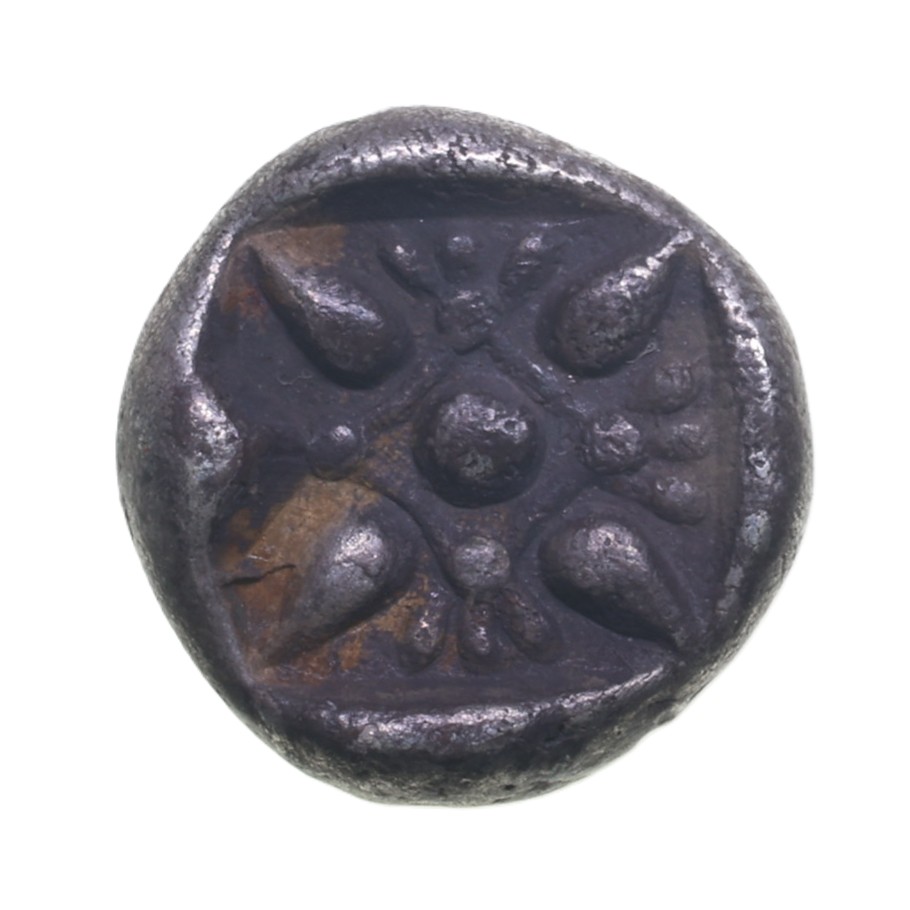Roaring lion’s head / Stellate design in incuse square
