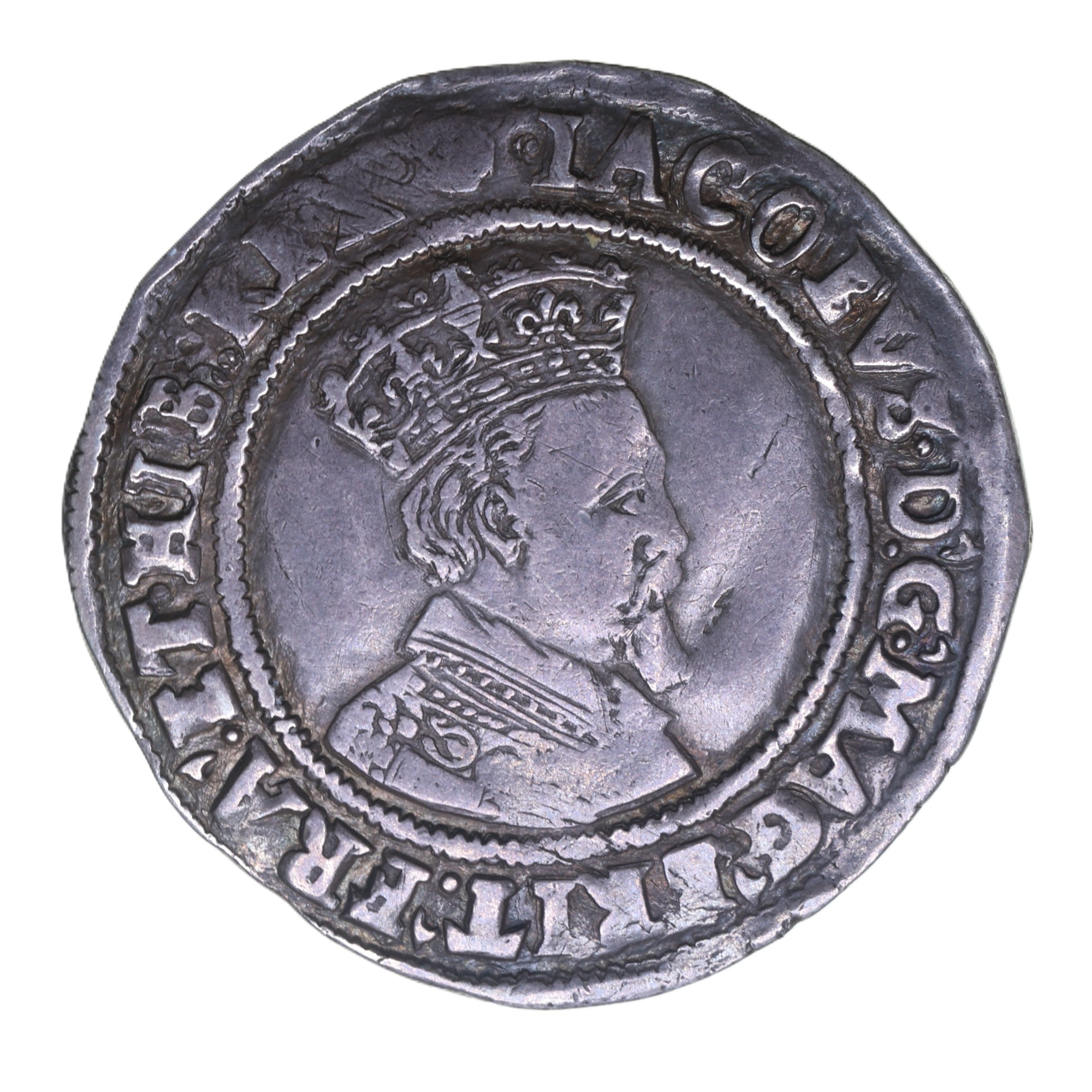 The son of Mary Queen of Scots, James acceded the Scottish throne as James VI when only 1 year old upon his mother’s abdication in AD 1567. He married Anne of Denmark and upon the death of the childless Elizabeth succeeded the English throne in AD 1603 being the nearest heir. Following the Gunpowder plot of AD 1605 James brought in severe sanctions against Catholics and also introduced the King James Bible. Scotland remained a separate kingdom and retained its own currency James established a currency of similar weight and fineness in both realms although a 12:1 ratio between Scottish and English denominations was maintained.