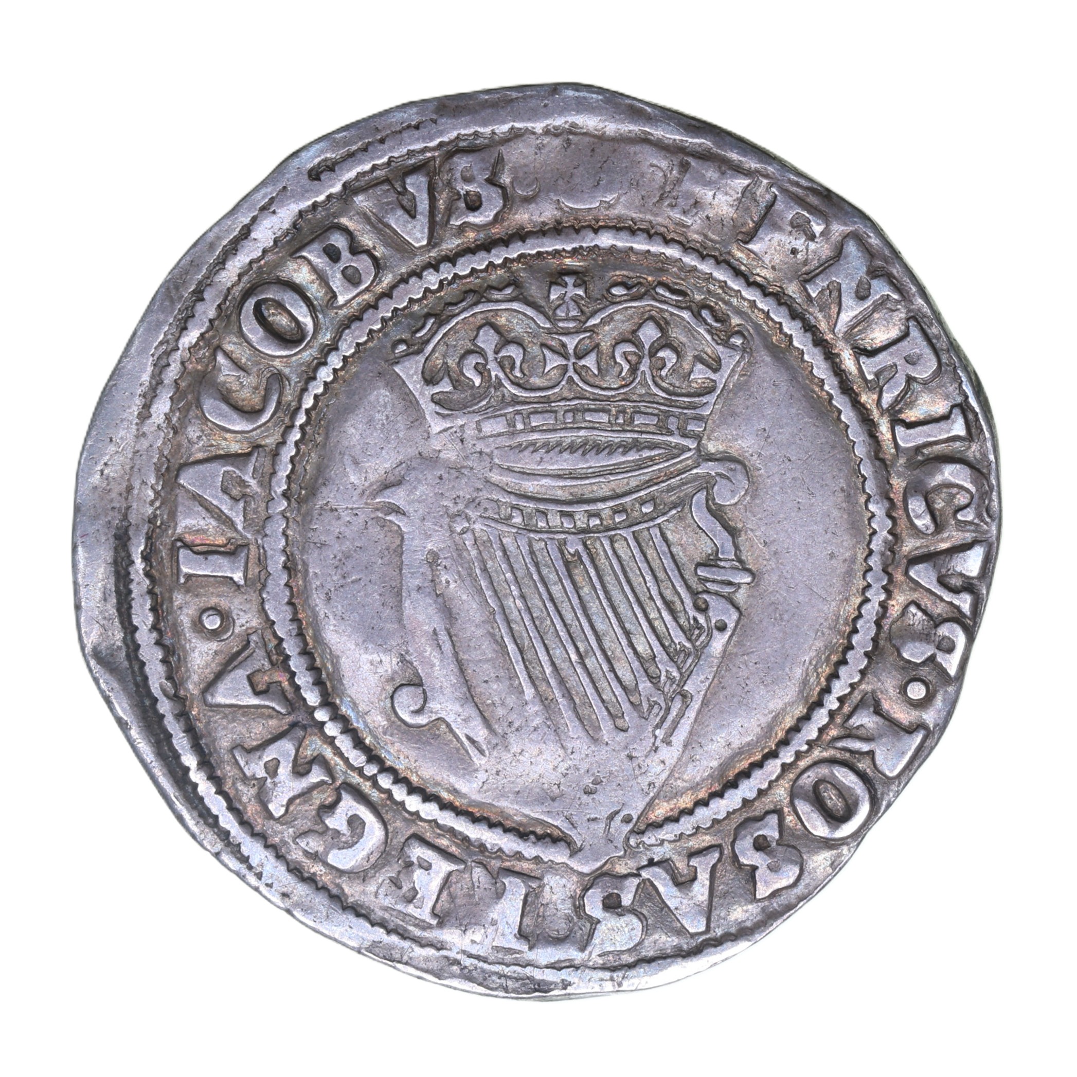 Crowned bust right / crowned harp