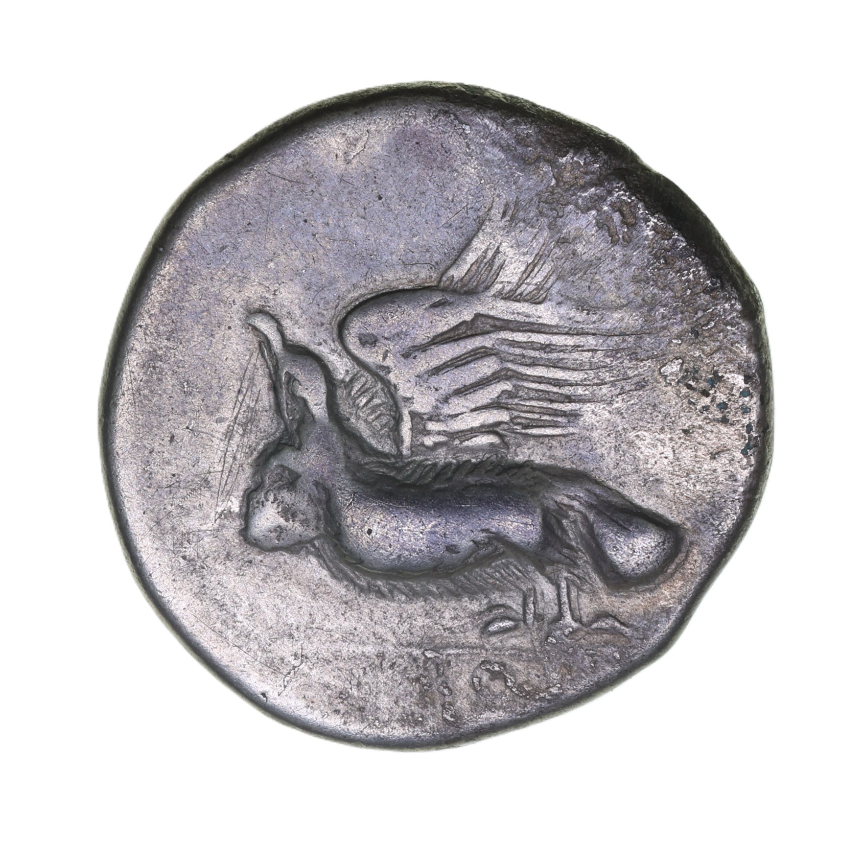This coin comes from the Cambridge collection of Ancient Greek Coinage. This extensive collection was formed over 40 years by a couple who shared their passion for classical history, carefully collecting as many known types as were available, spending hours labelling each coin and fitting it in to their collection. The kingdom of Ancient Greece is not easy to understand but illustrated with these wonderful coins a map emerges and being so beautiful in their design, they are a pleasure to handle. As with any collection the time comes where it must be passed on and in this case the collectors decided to sell each coin individually to give the next generation of enthusiasts the opportunity to select pieces for their own collections. Many of the coins have previous labels.
