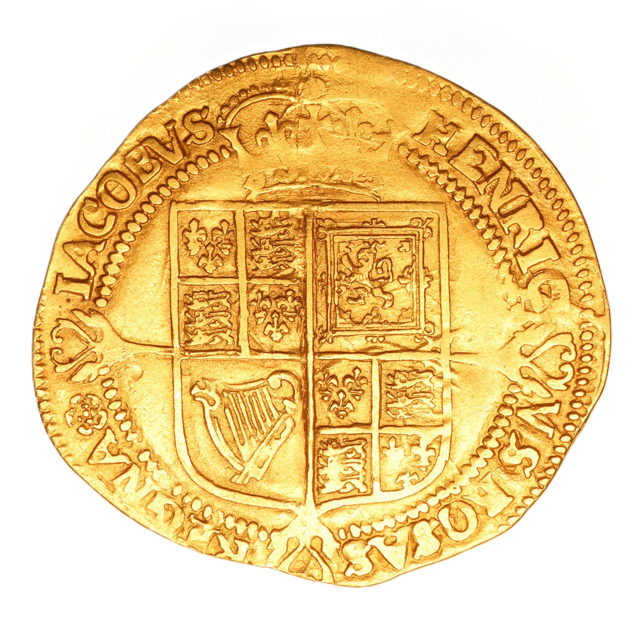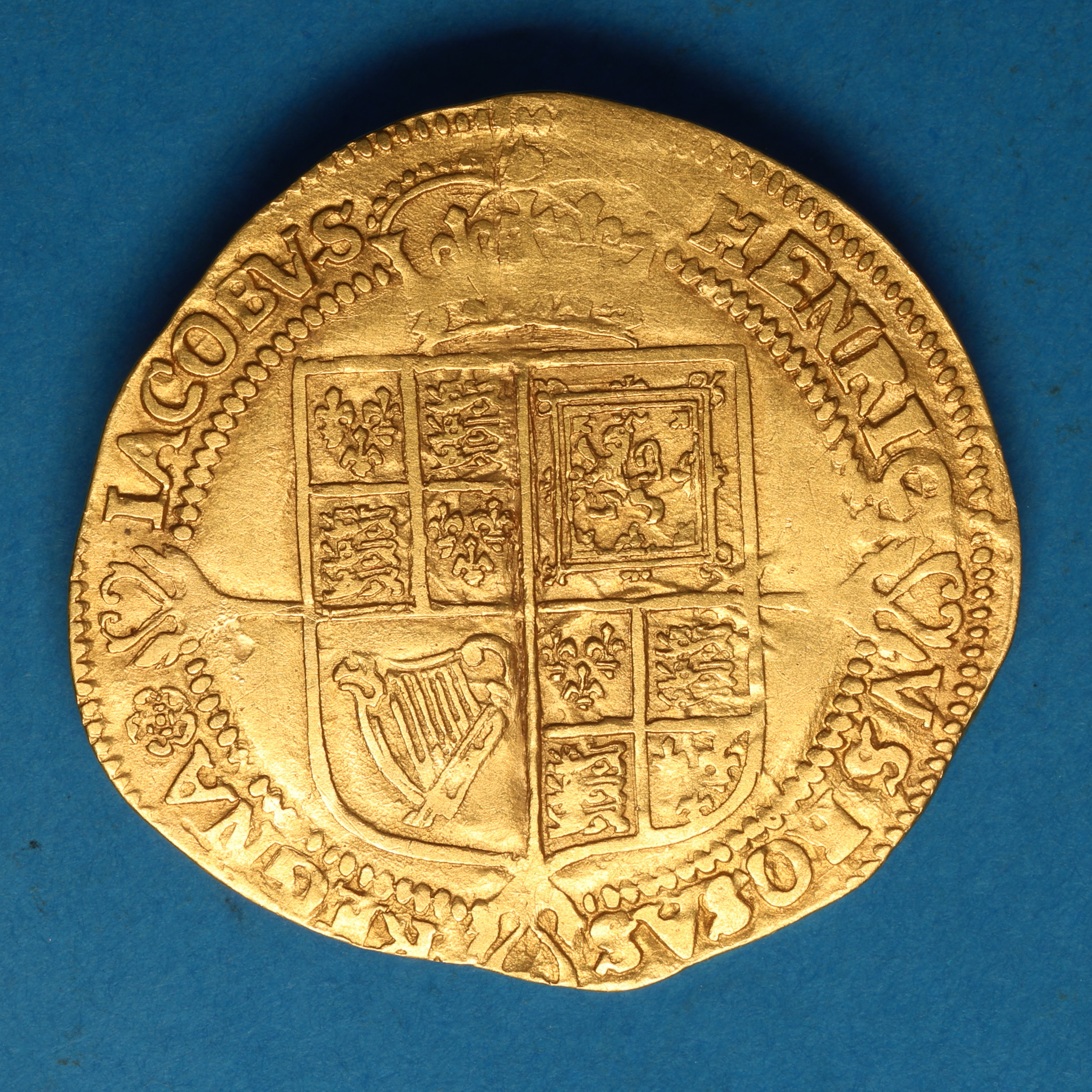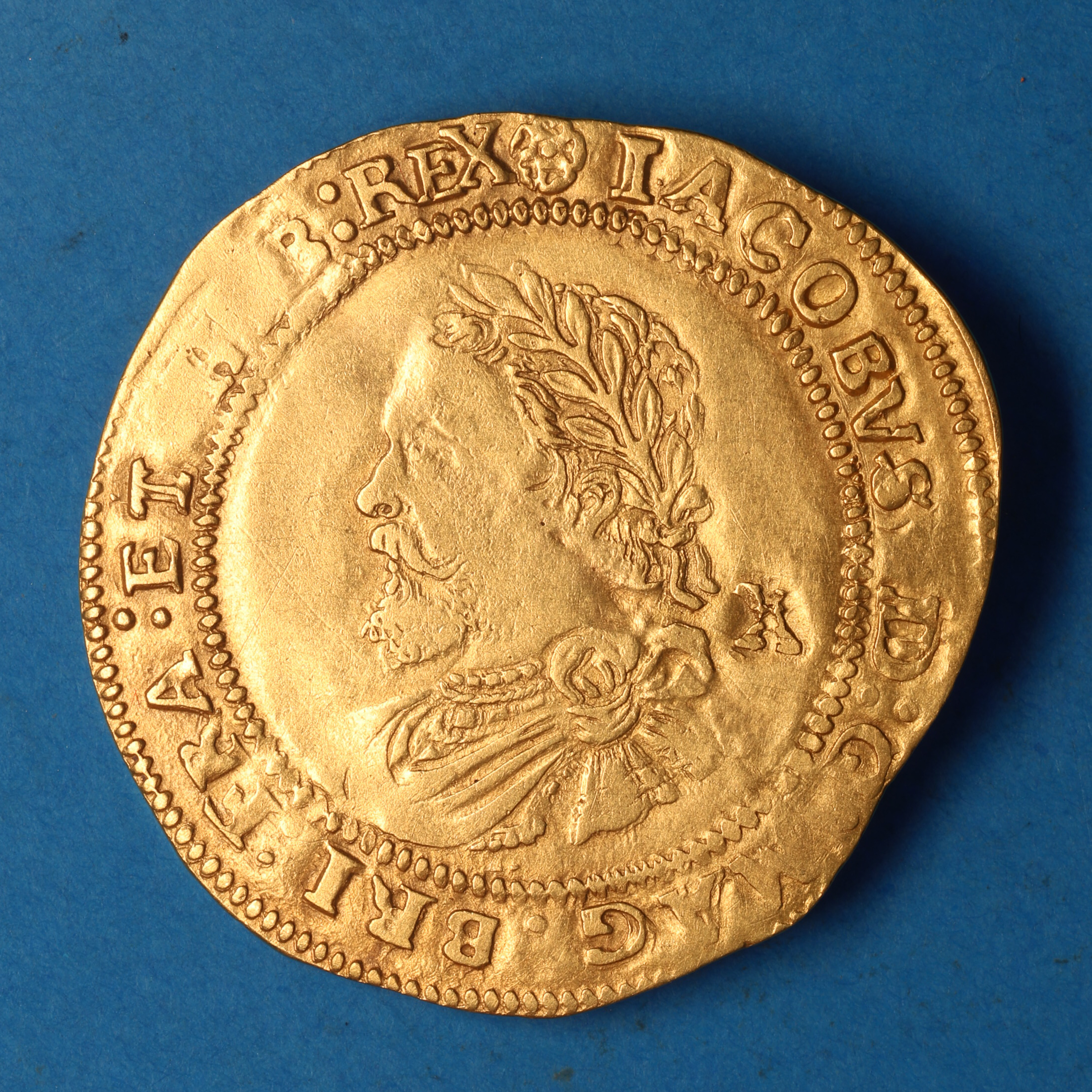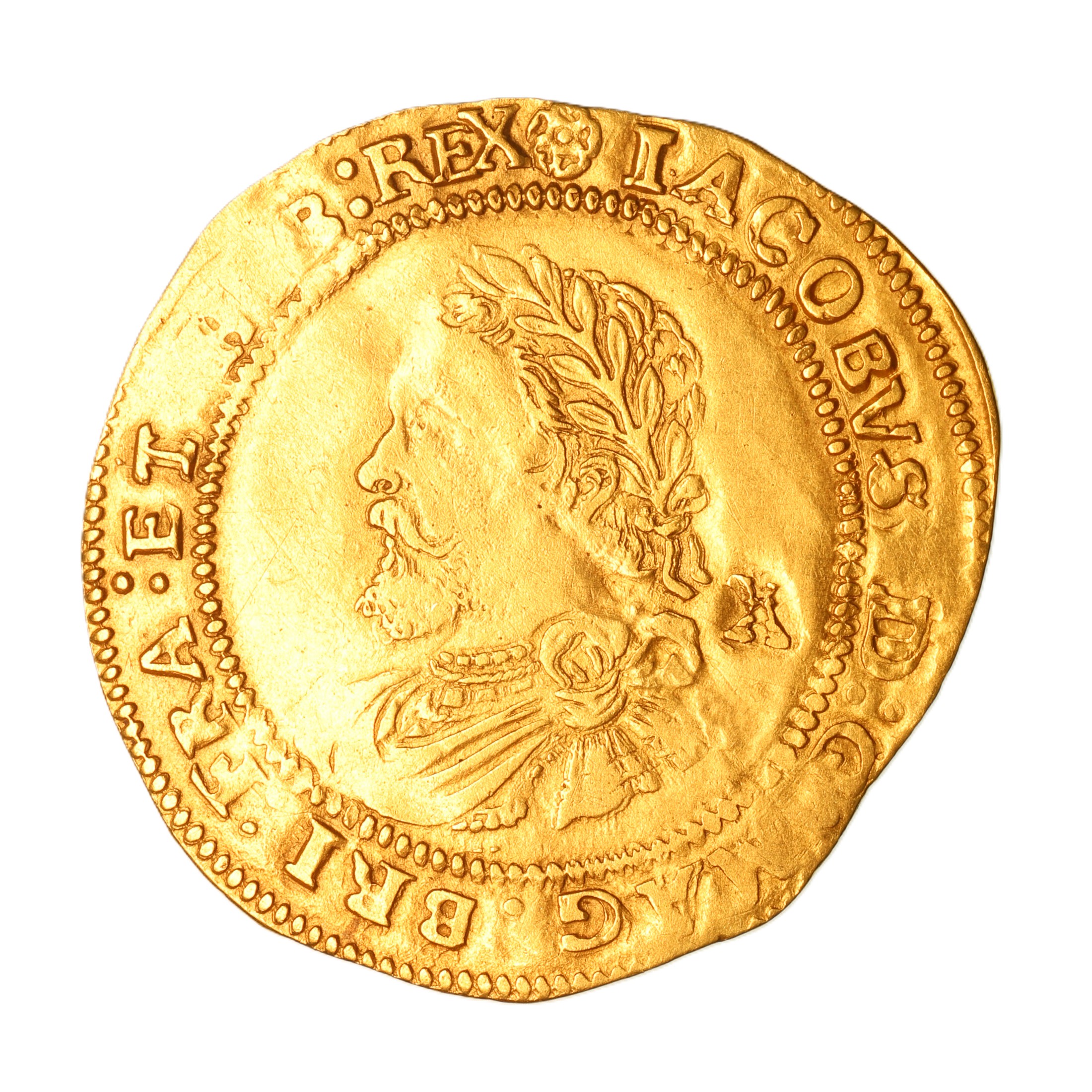 The reign saw a number of reforms in the English coinage most notably the introduction of the gold Unite, itself replaced in AD 1619 by the Laurel. Copper coins were also issued for the first time when a licence was issued to Lord Harrington to issue farthings.