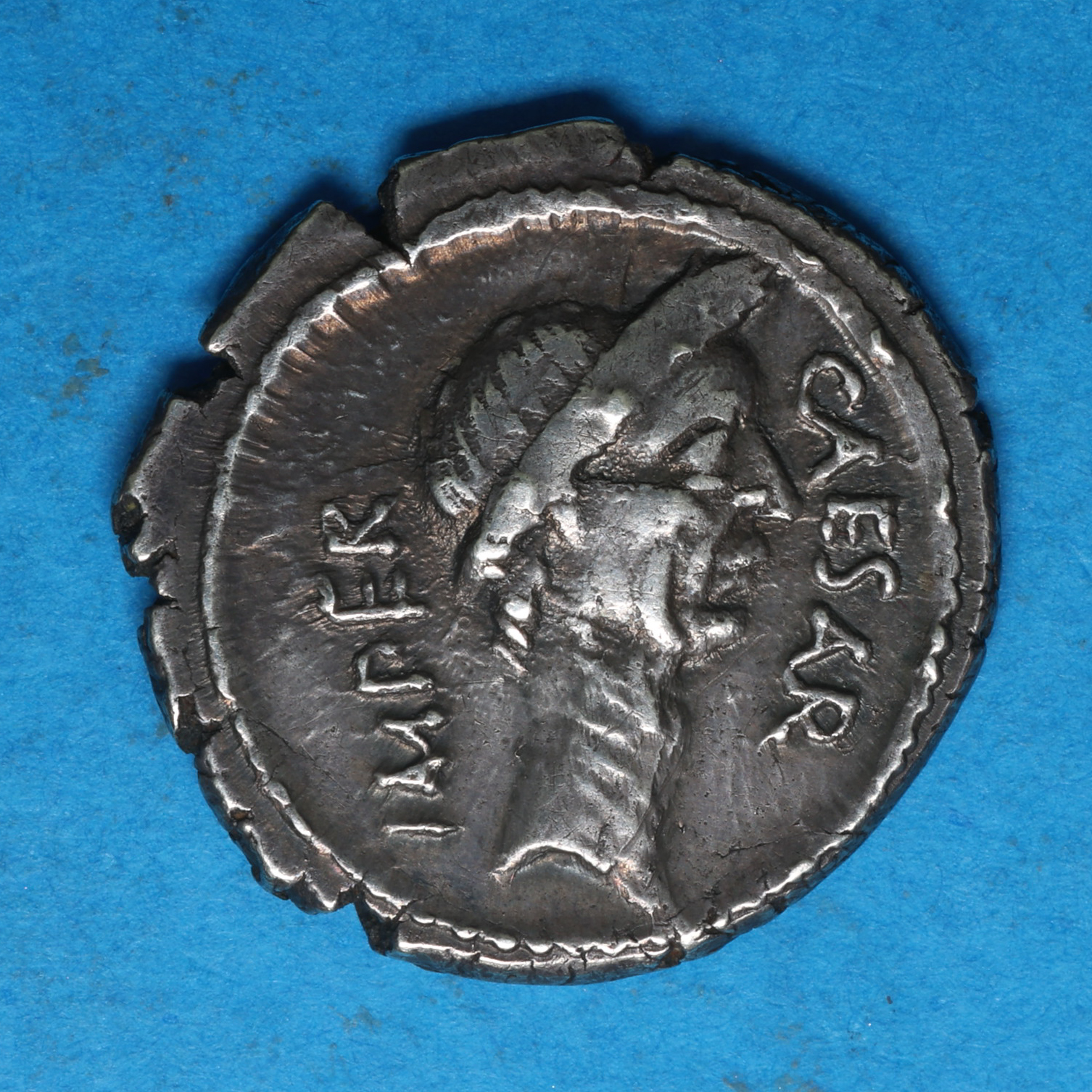 When Crassus was killed in 53BC the Triumvirate was destabilised and Caesar and Pompey were left to face each other as rivals. This came to head when Caesar invaded Italy crossing the River Rubicon and driving Pompey from Rome. The eventual showdown with Pompey came in 48BC at the Battle of Pharsalus. This resulted in Pompey’s defeat and death although his sons continued to campaign in Spain until Caesar eventually defeated then in 45BC. Caesar’s political preeminent then resulted in his appointment as Consul for life. When his portrait also started to appear on the coinage the Republicans, fearing the establishment of a dictatorship, had him assassinated in the Senate on the Ides of March in 44BC.