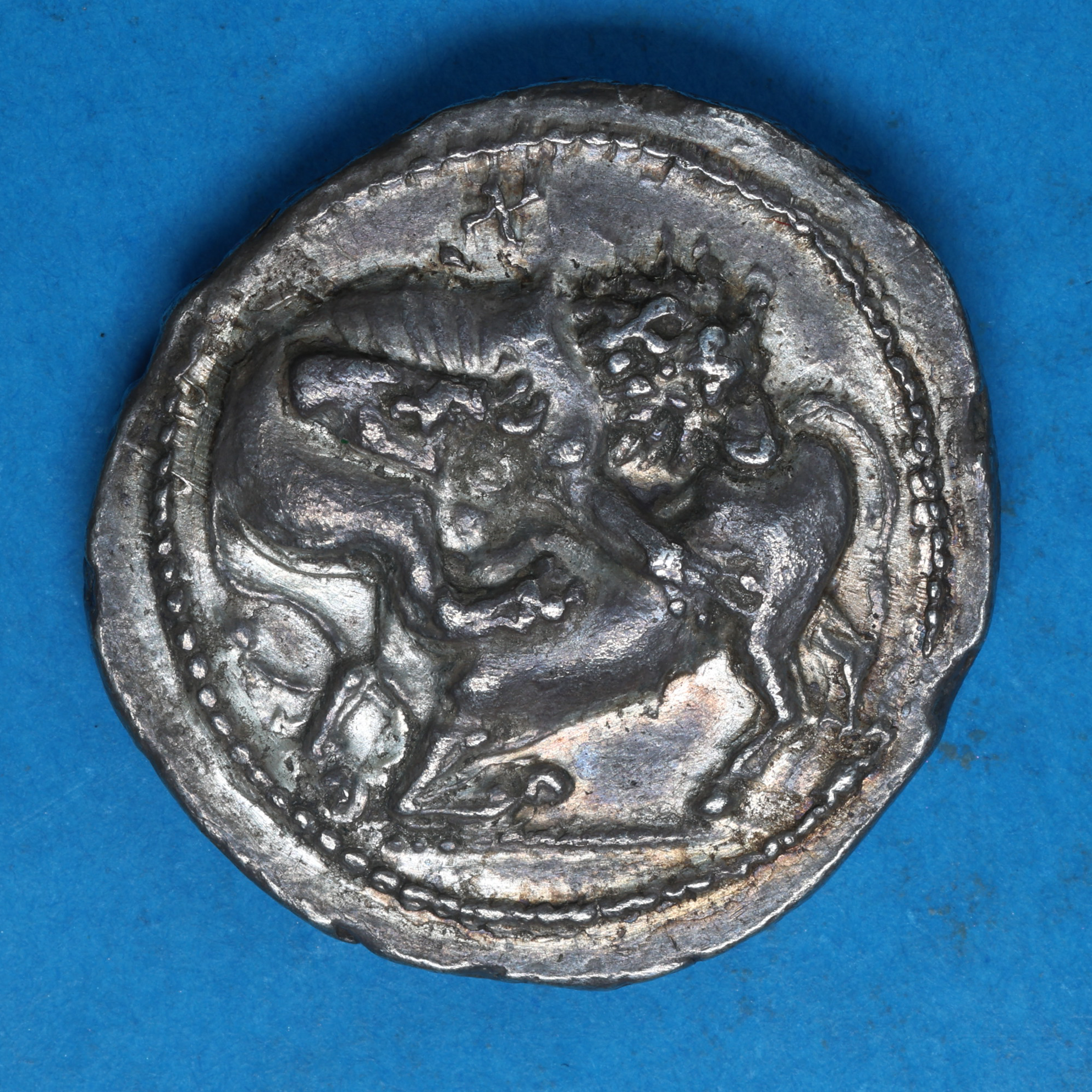 This coin comes from the Cambridge collection of Ancient Greek Coinage. This extensive collection was formed over 40 years by a couple who shared their passion for classical history, carefully collecting as many known types as were available, spending hours labelling each coin and fitting it in to their collection. The kingdom of Ancient Greece is not easy to understand but illustrated with these wonderful coins a map emerges and being so beautiful in their design, they are a pleasure to handle. As with any collection the time comes where it must be passed on and in this case the collectors decided to sell each coin individually to give the next generation of enthusiasts the opportunity to select pieces for their own collections. Many of the coins have previous labels.
