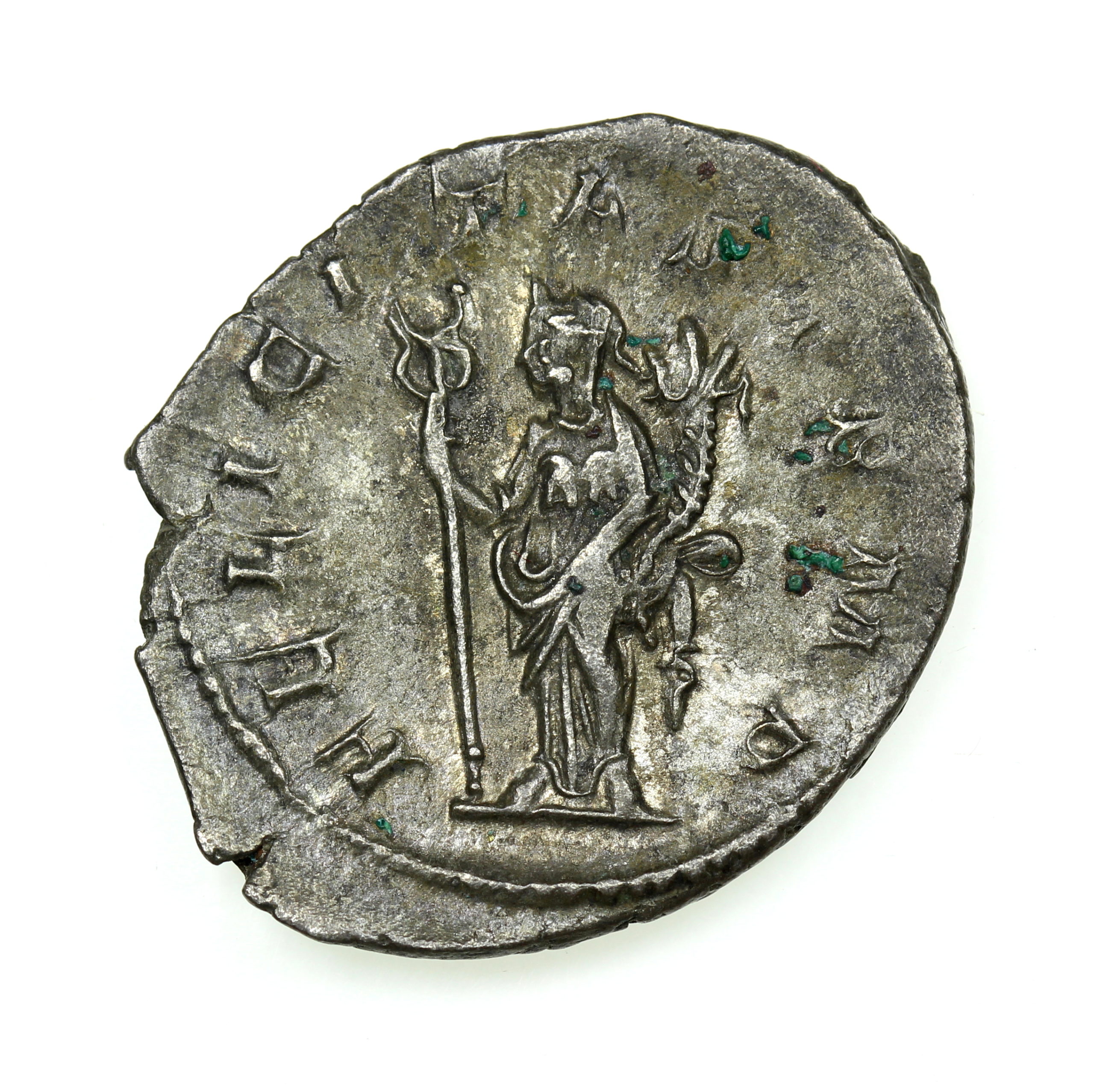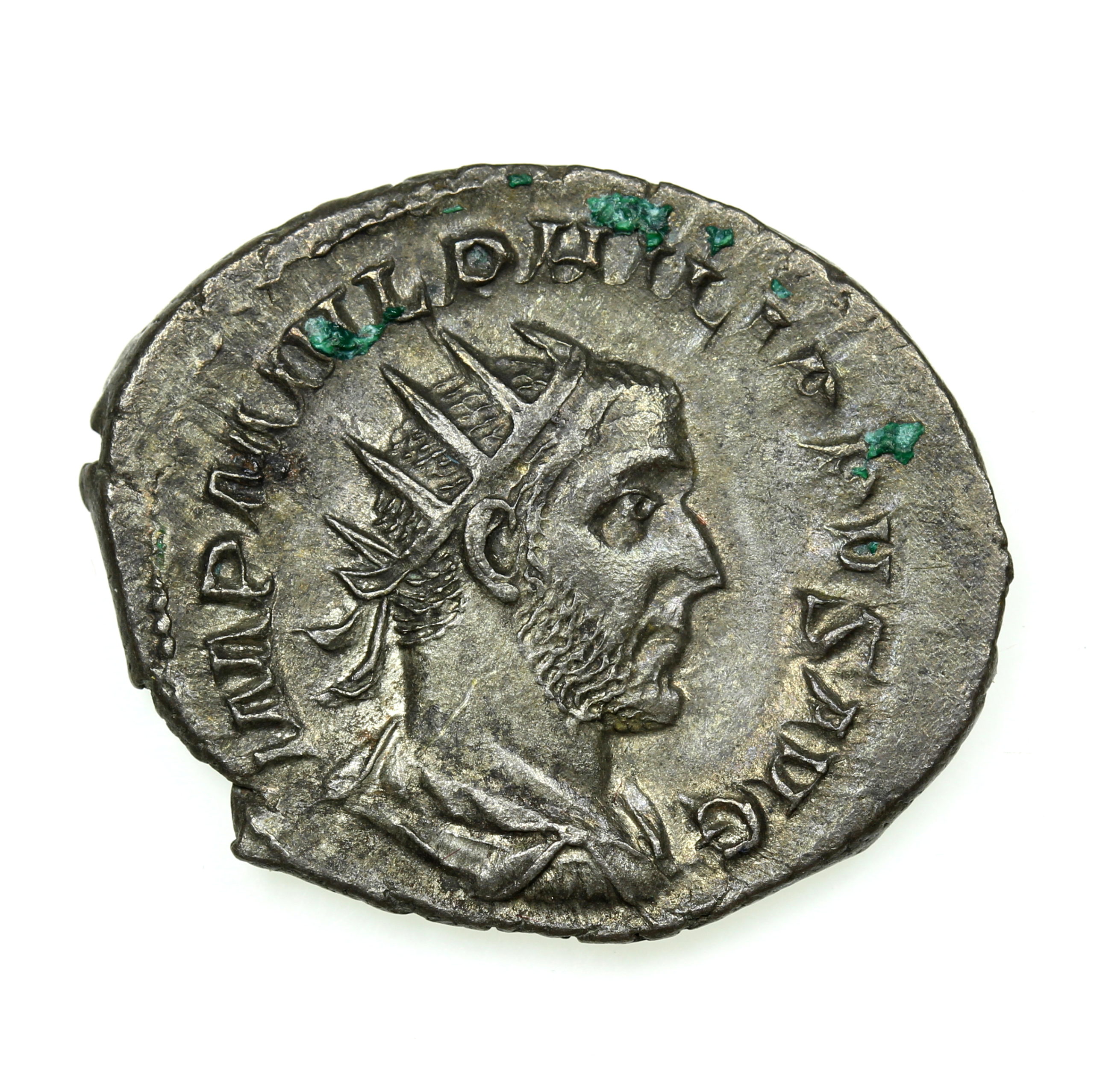 A feature of the antoniniani issued during the reign is the appearance of officina marks in the Rome mint indicating that coins were issued from a number of workshops within the city. This practice later spread to other mints throughout the empire.
