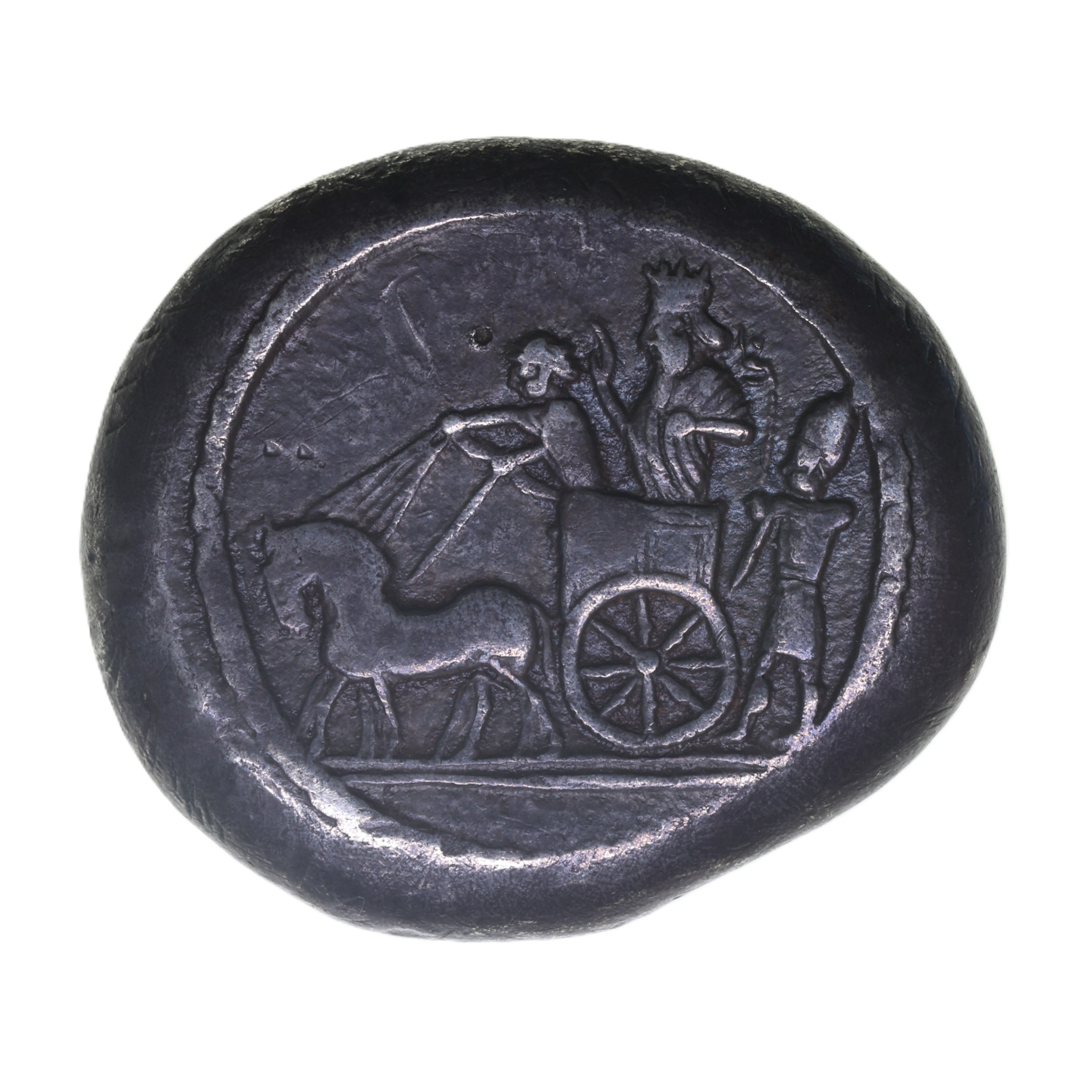 This coin comes from the Cambridge collection of Ancient Greek Coinage. This extensive collection was formed over 40 years by a couple who shared their passion for classical history, carefully collecting as many known types as were available, spending hours labelling each coin and fitting it in to their collection. The kingdom of Ancient Greece is not easy to understand but illustrated with these wonderful coins a map emerges and being so beautiful in their design, they are a pleasure to handle. As with any collection the time comes where it must be passed on and in this case the collectors decided to sell each coin individually to give the next generation of enthusiasts the opportunity to select pieces for their own collections. Many of the coins have previous labels.