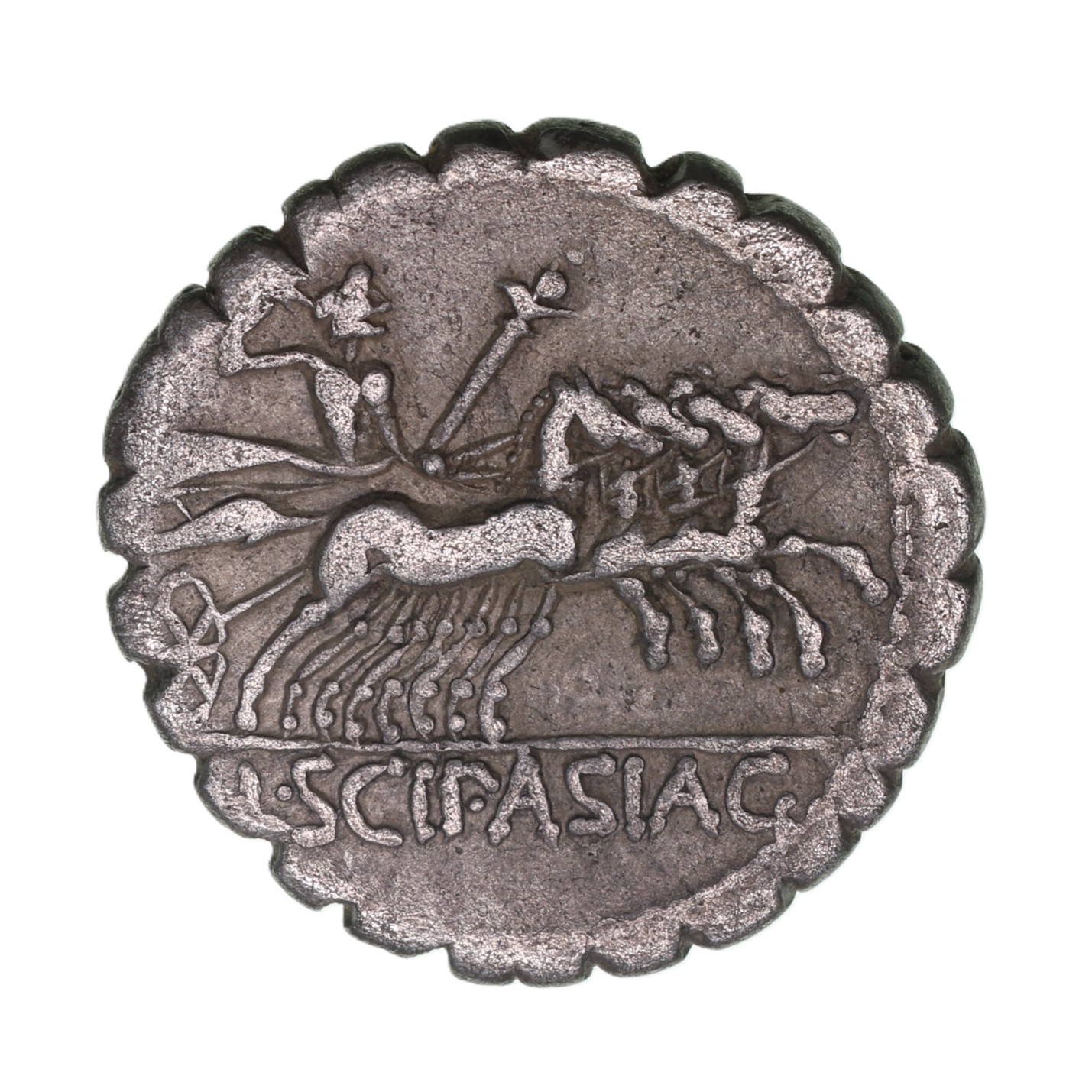 L. Cornelius Scipio Asiaticus 106 BC Silver Denarius serratus