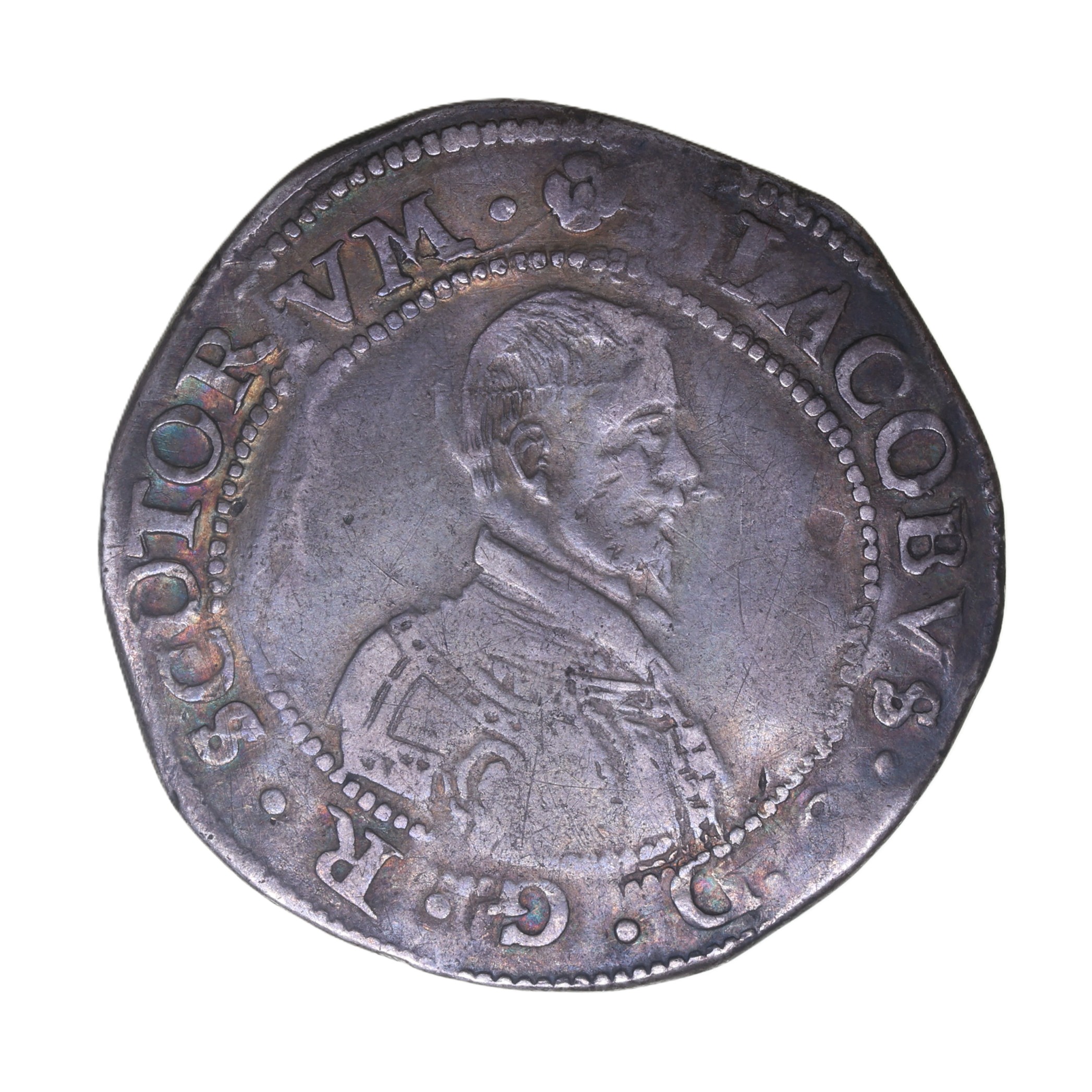 The son of Mary Queen of Scots, James acceded the Scottish throne as James VI when only 1 year old upon his motherโ€™s abdication in AD 1567. He married Anne of Denmark and upon the death of the childless Elizabeth succeeded the English throne in AD 1603 being the nearest heir. Following the Gunpowder plot of AD 1605 James brought in severe sanctions against Catholics and also introduced the King James Bible. Scotland remained a separate kingdom and retained its own currency James established a currency of similar weight and fineness in both realms although a 12:1 ratio between Scottish and English denominations was maintained.