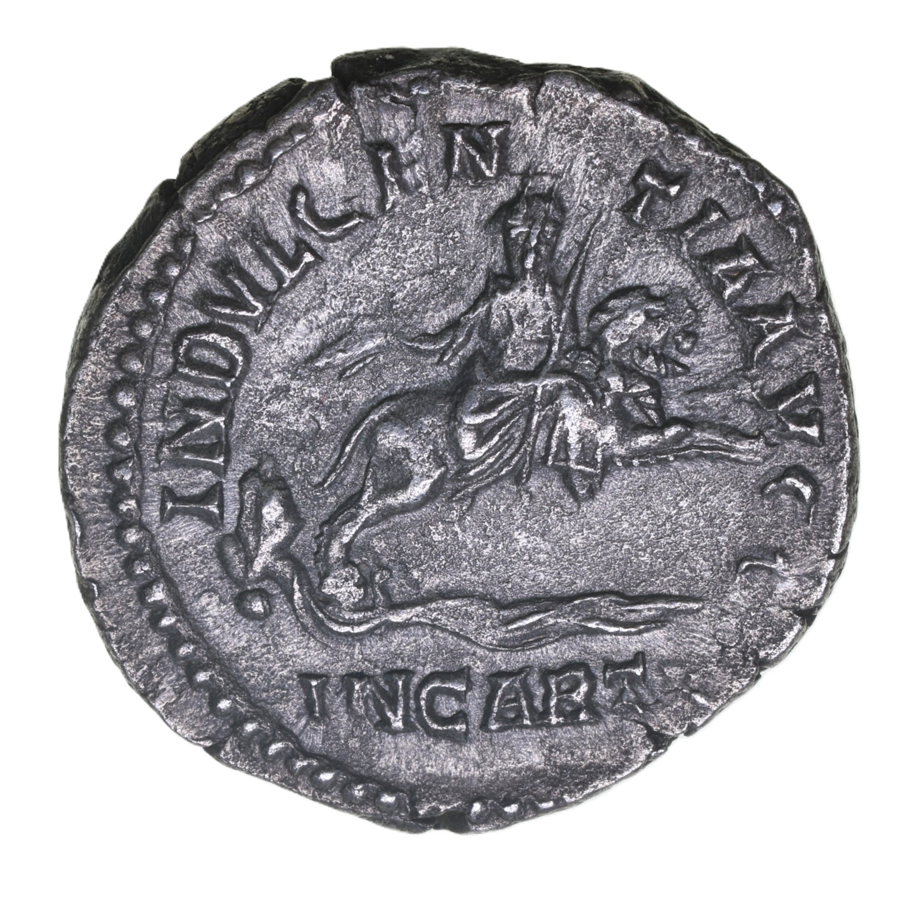 Refusing to recognise Niger Severus joined forces with Albinus offering him the junior rank of Caesar. The following year he defeated Niger leaving the entire empire in Severus’ hands. The following year he broke with Albinus and defeated him in a battle near Lugdunum leaving the way clear to promote his own son Caracalla. Carcalla was created Caesar in AD 195 before being elevated to joint Augustus in AD 198.