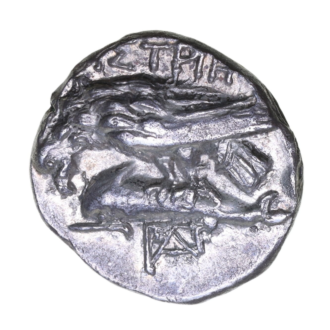 This coin comes from the Cambridge collection of Ancient Greek Coinage. This extensive collection was formed over 40 years by a couple who shared their passion for classical history, carefully collecting as many known types as were available, spending hours labelling each coin and fitting it in to their collection. The kingdom of Ancient Greece is not easy to understand but illustrated with these wonderful coins a map emerges and being so beautiful in their design, they are a pleasure to handle. As with any collection the time comes where it must be passed on and in this case the collectors decided to sell each coin individually to give the next generation of enthusiasts the opportunity to select pieces for their own collections. Many of the coins have previous labels.